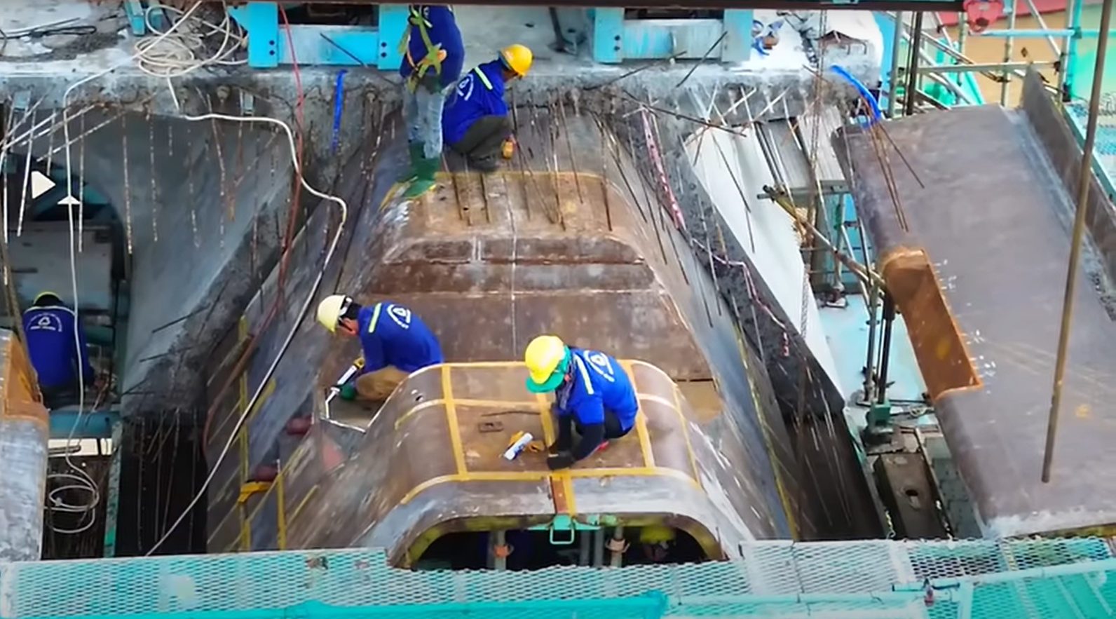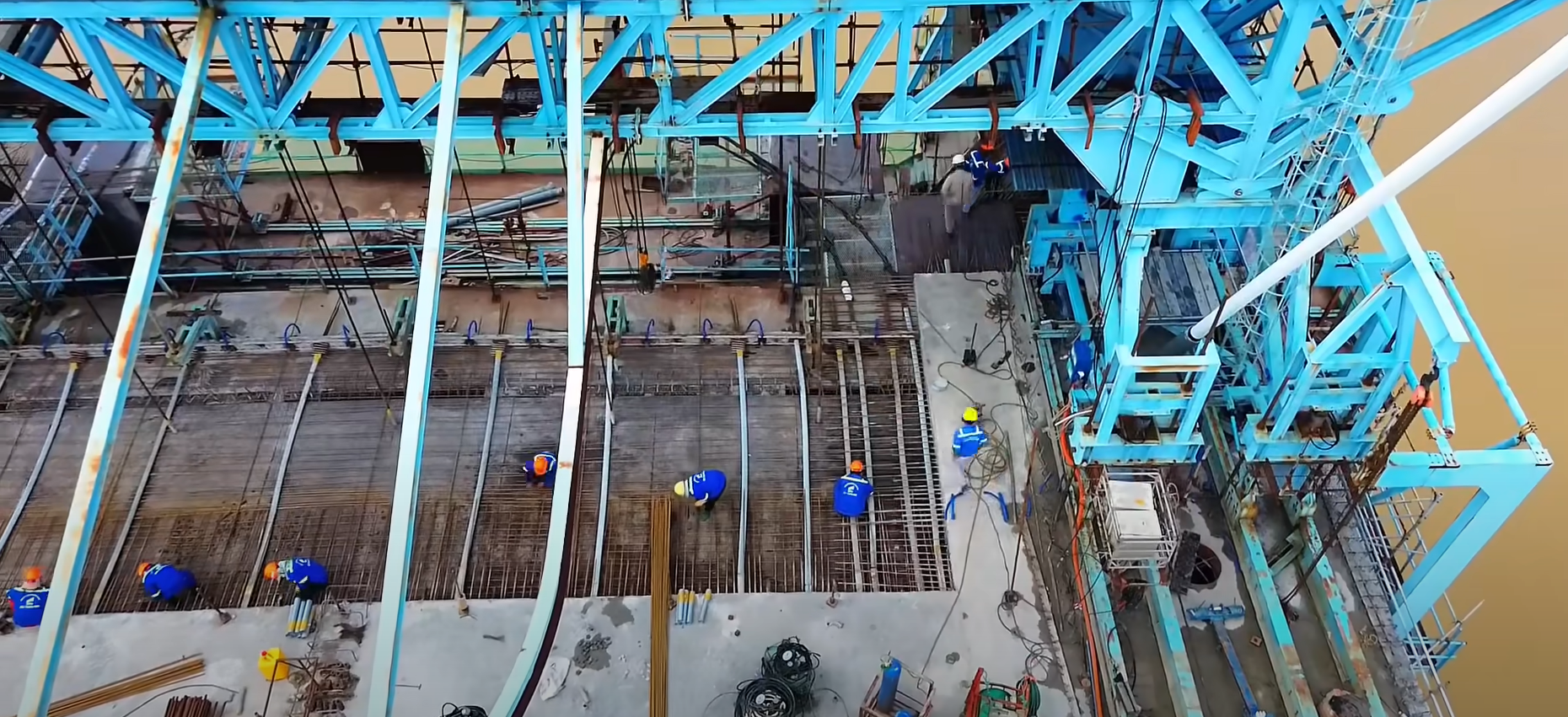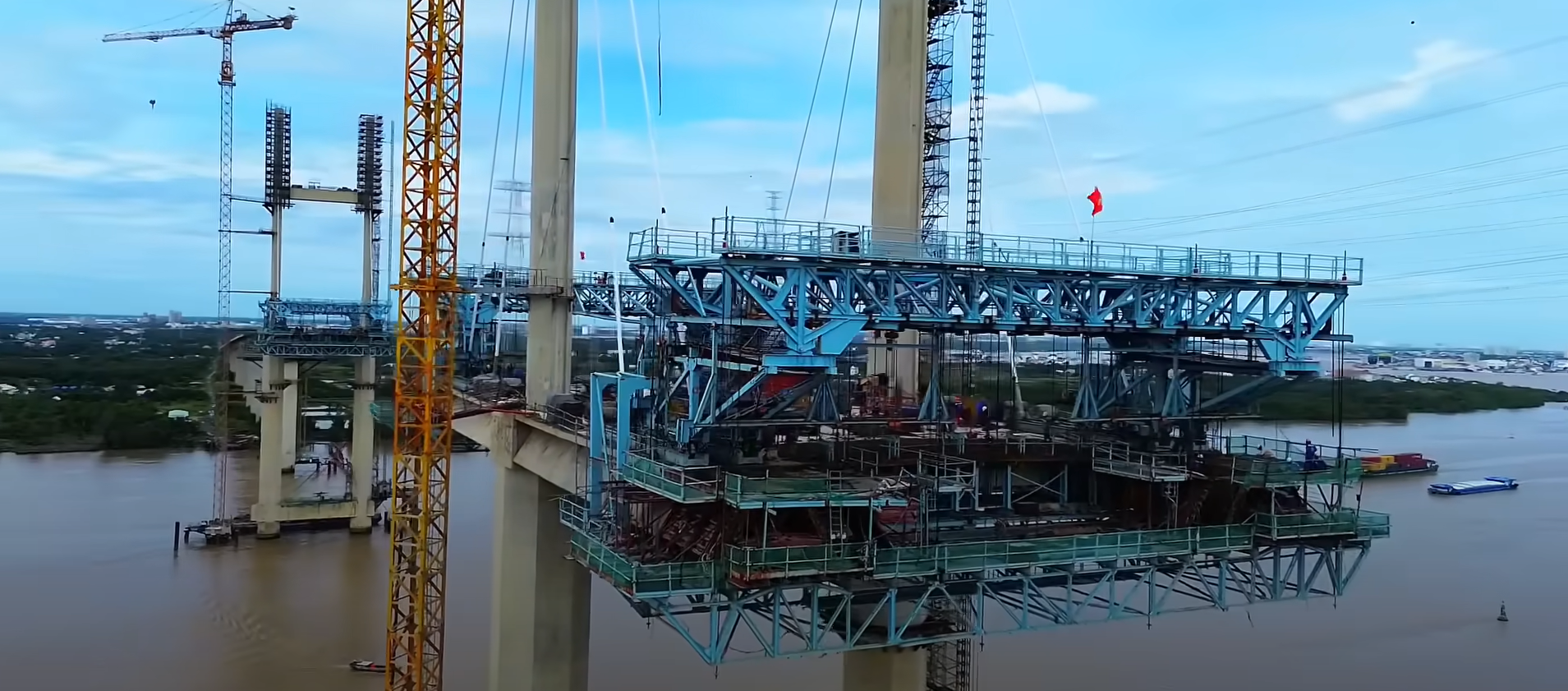 Cùng với đó, nhà thầu thi công trụ P15 phía thành phố Hồ Chí Minh cũng đang triển khai đúc đốt dầm tiếp theo. Hơn 200 công nhân cùng nhiều máy móc làm việc liên tục ngày đêm, tăng ca, kíp để hoàn thành cây cầu trong thời gian sớm nhất.