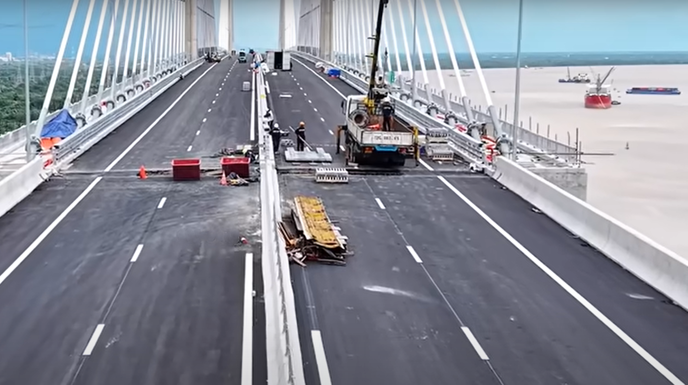 Công nhân đang hoàn thiện khe co giãn trên cầu, sẵn sàng hoàn tất công trình trong năm 2025. Ảnh: Đình Võ