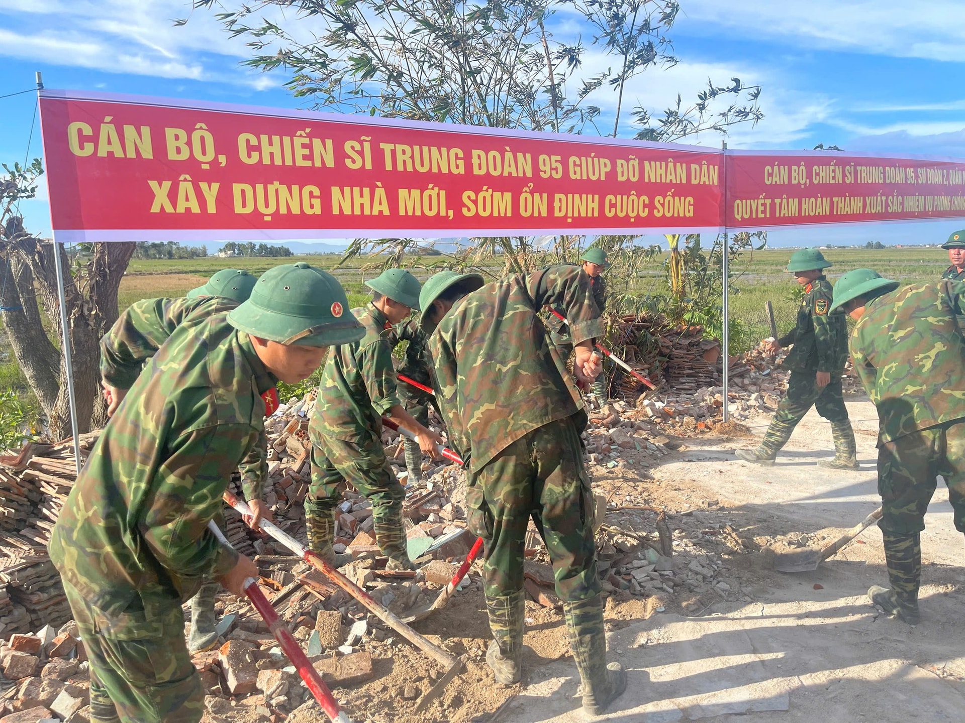 Với tinh thần “không để ai bị bỏ lại phía sau”, cán bộ, chiến sĩ Trung đoàn 95 quyết tâm hoàn thành từng ngôi nhà đúng tiến độ, bảo đảm bà con sớm có mái ấm ổn định, kịp đón Tết Nguyên đán năm 2026. Ảnh: TH95.