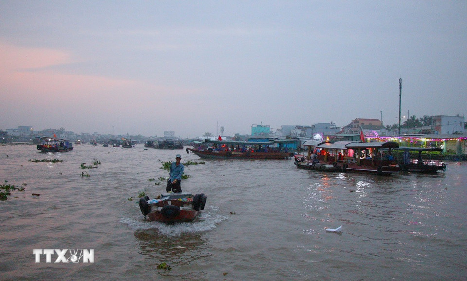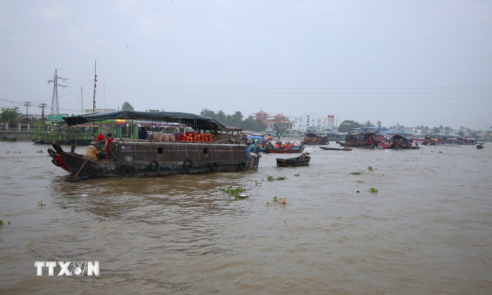 Nhộn nhịp hoạt động giao thương trên chợ nổi. (Ảnh: Nguyễn Hằng/TTXVN)