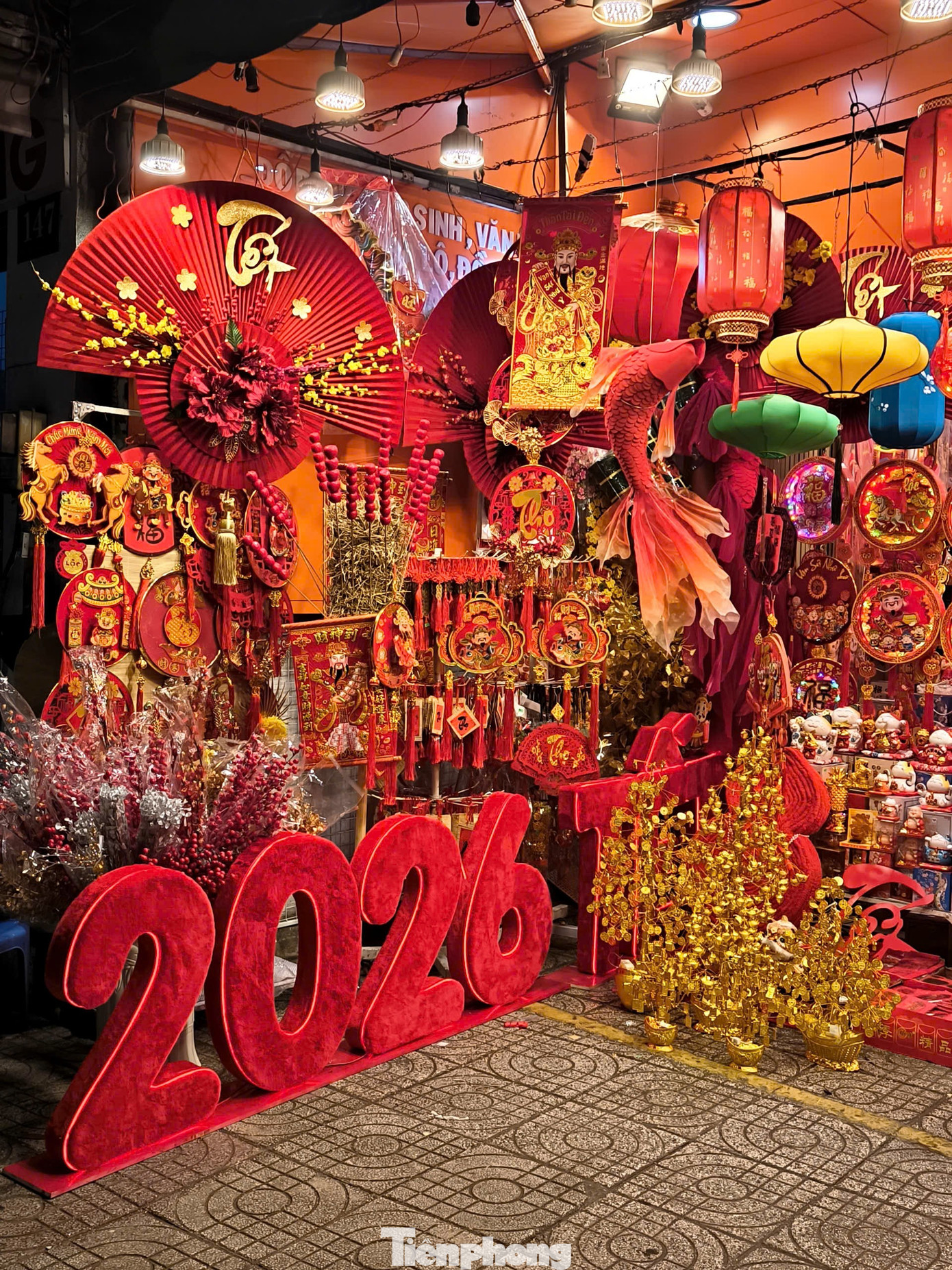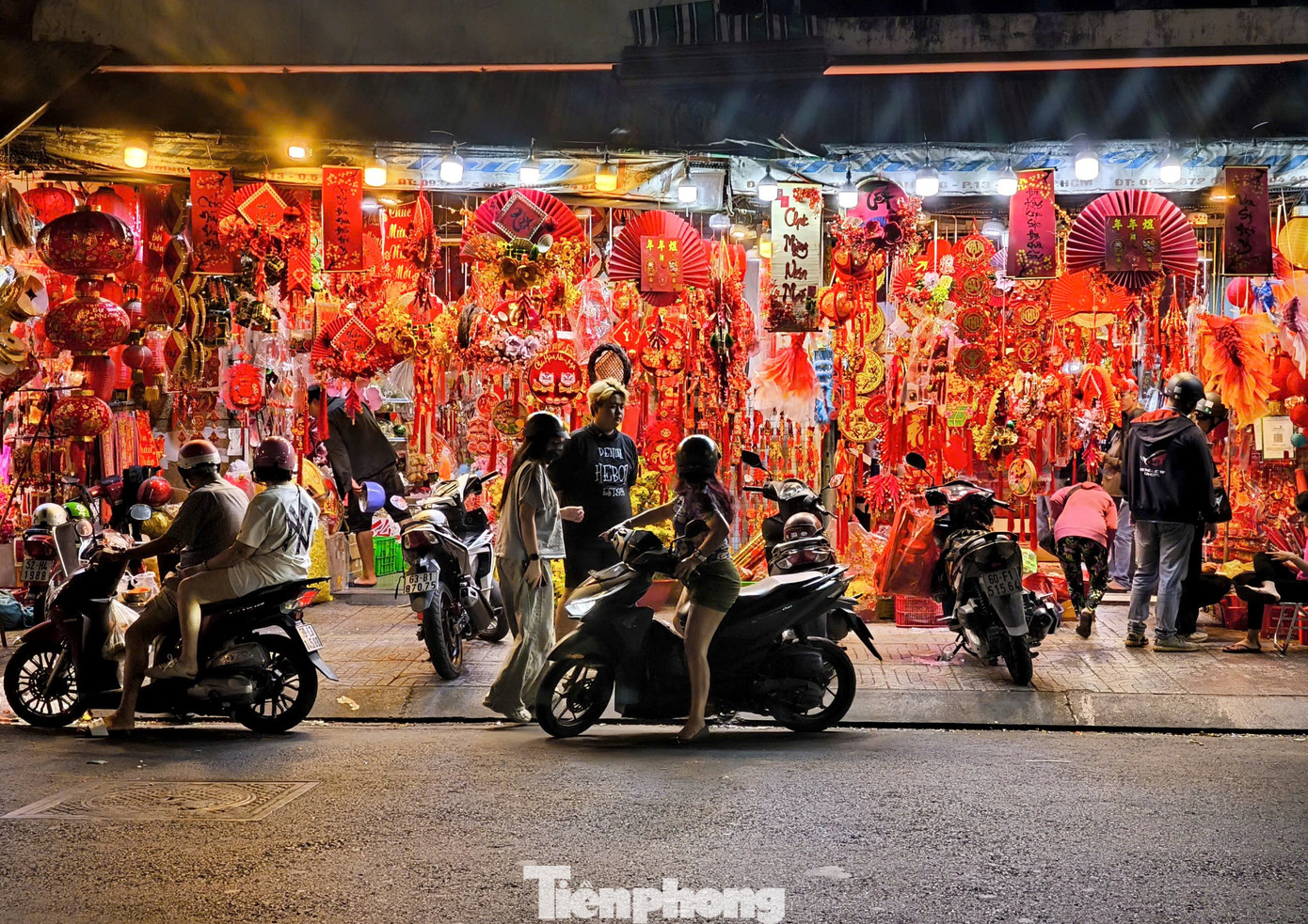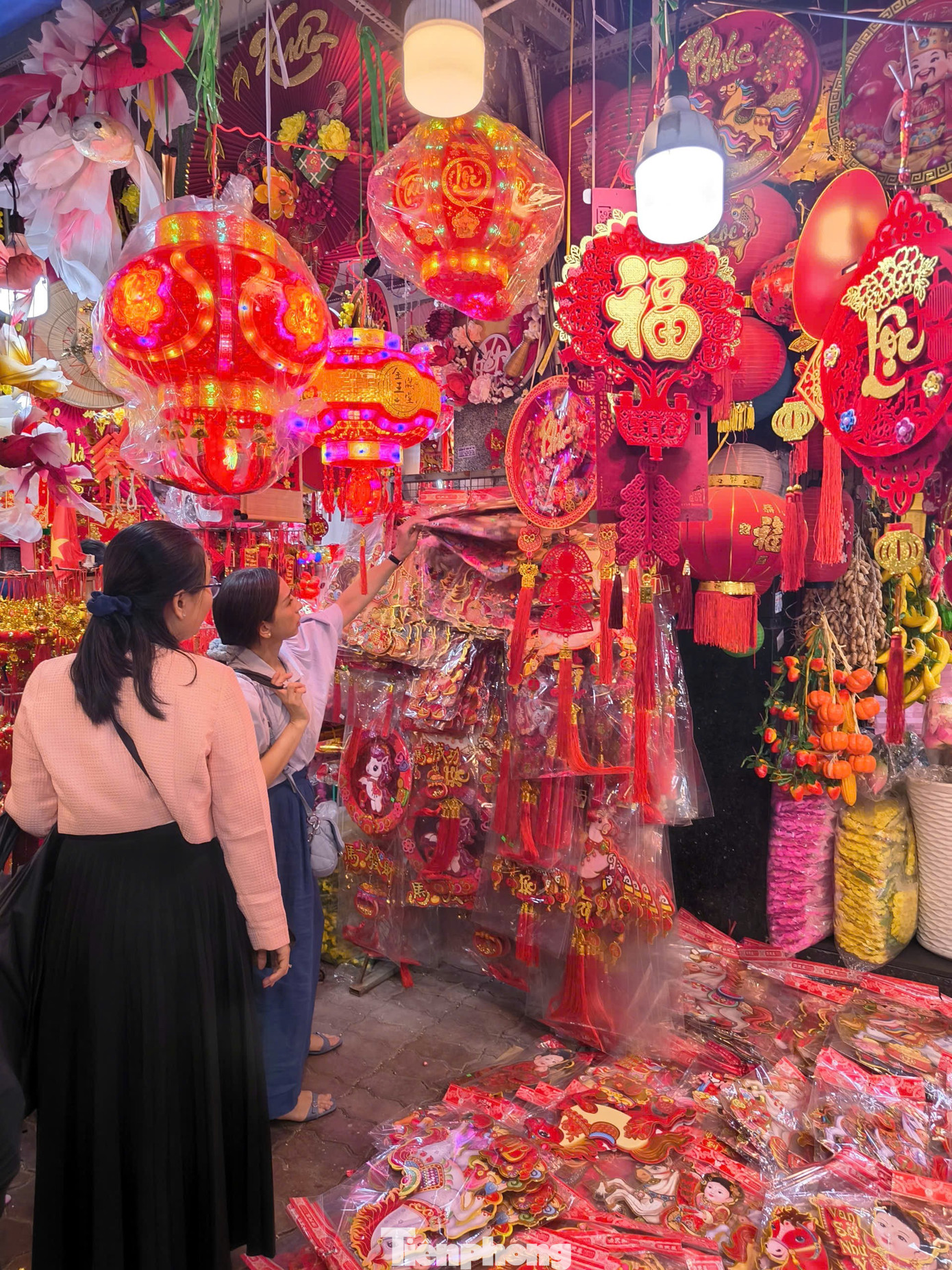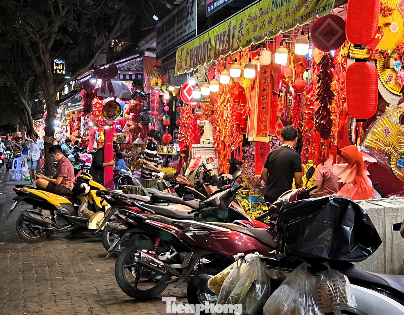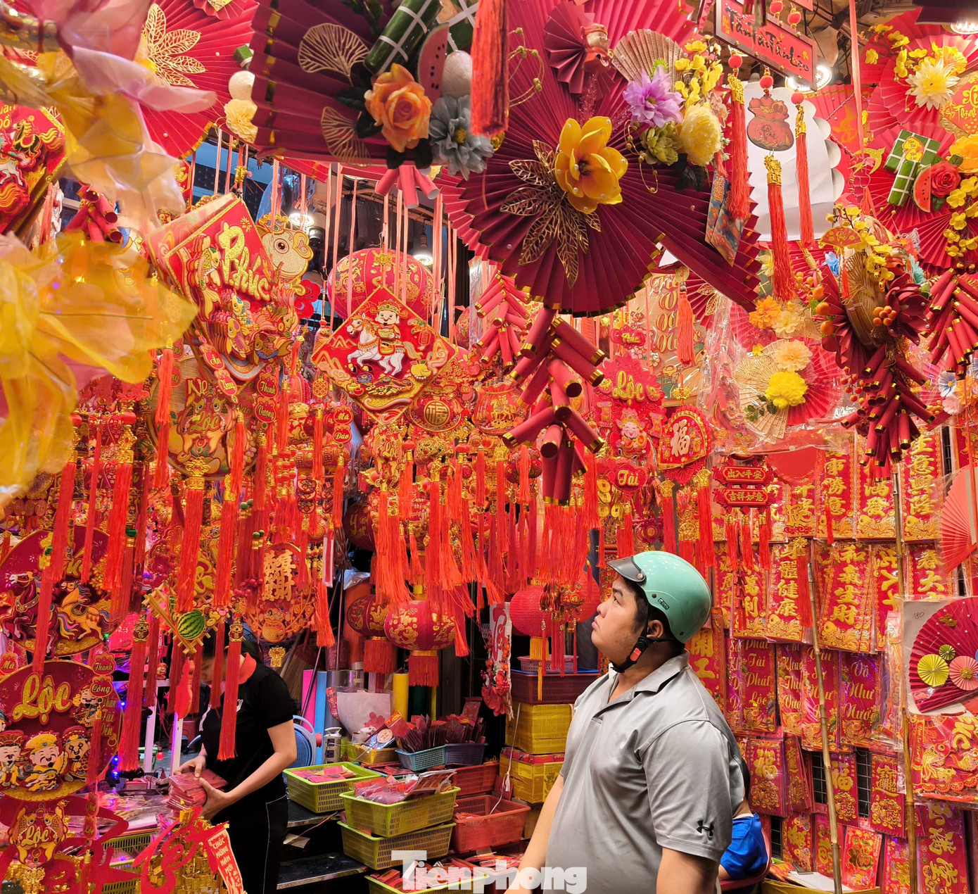 Theo ghi nhận của phóng viên Sinh Viên Việt Nam, đoạn đường Hải Thượng Lãn Ông ngập tràn với hai sắc màu chủ đạo là đỏ và vàng. Các cửa hàng bày bán hàng ngàn sản phẩm trang trí Tết.