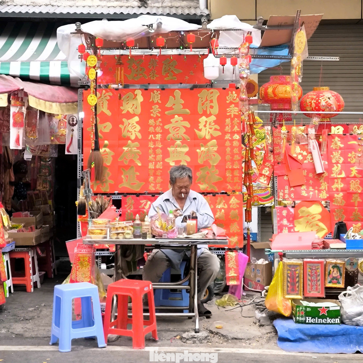 Không chỉ vậy, trên các tuyến đường Trần Quý (phường Phú Thọ), đường Nguyễn Trãi (phường Chợ Lớn) còn có các quầy viết thư pháp, câu đối Tết. Tùy vào nhu cầu của khách mà người viết sẽ "múa bút". Giá cả cũng sẽ dao động từ vài chục nghìn đồng đến vài trăm nghìn đồng, tùy thuộc vào kích cỡ khổ câu đối, chi tiết nội dung.