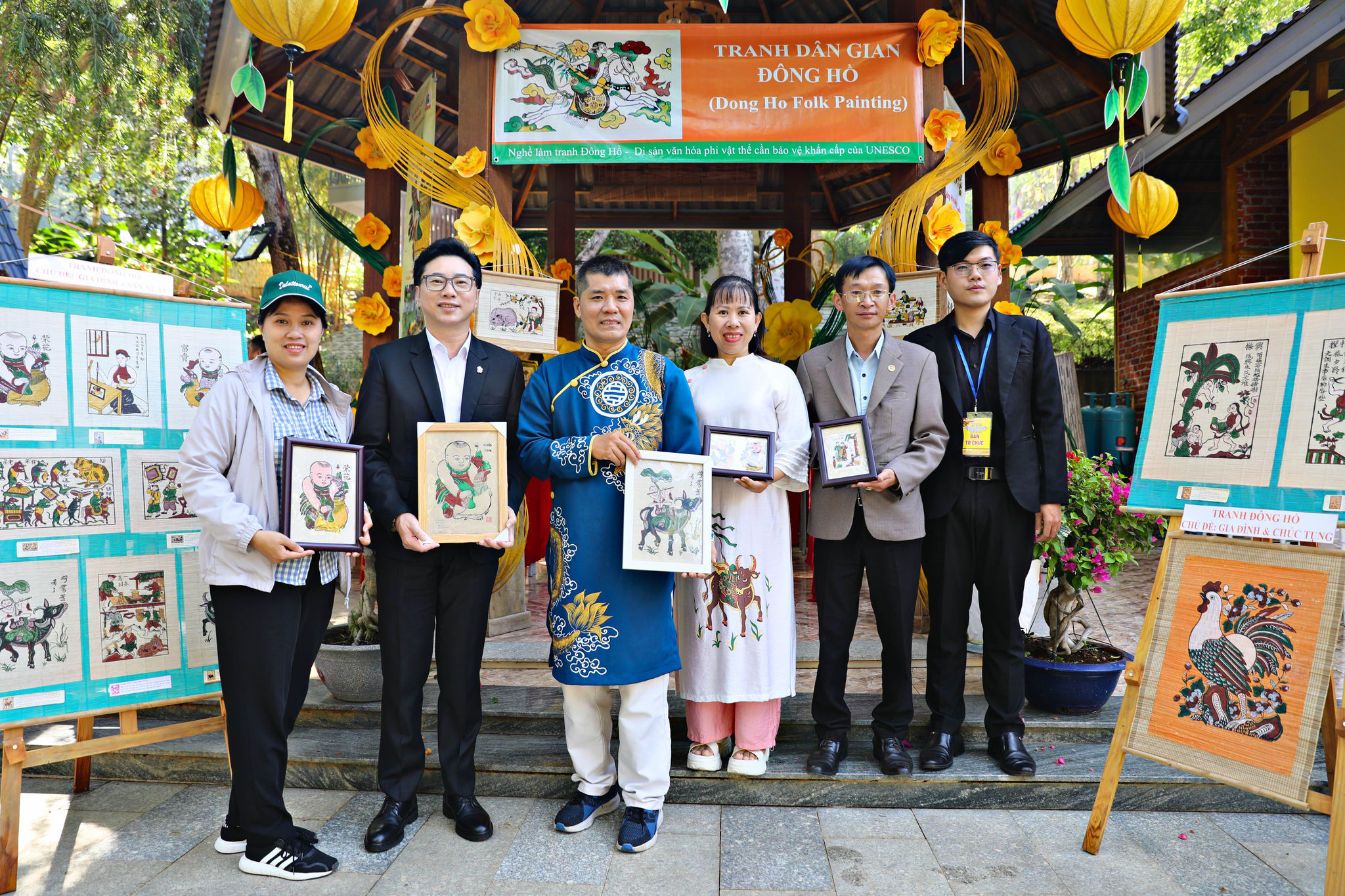 Những bức tranh dân gian với màu sắc tươi sáng, nội dung gần gũi đời sống cũng góp phần làm phong phú thêm trải nghiệm của người tham dự.