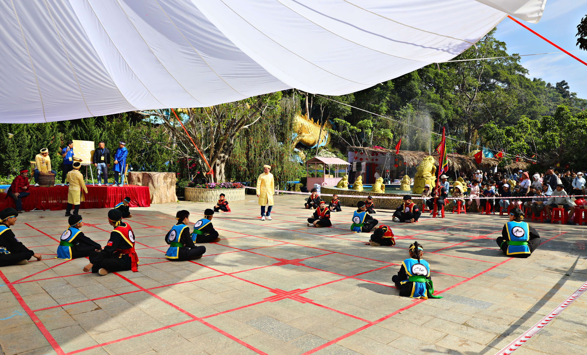 Các chương trình văn hóa nghệ thuật dân gian, điệu múa truyền thống bản địa phục vụ người dân, du khách về dâng hương Quốc Tổ