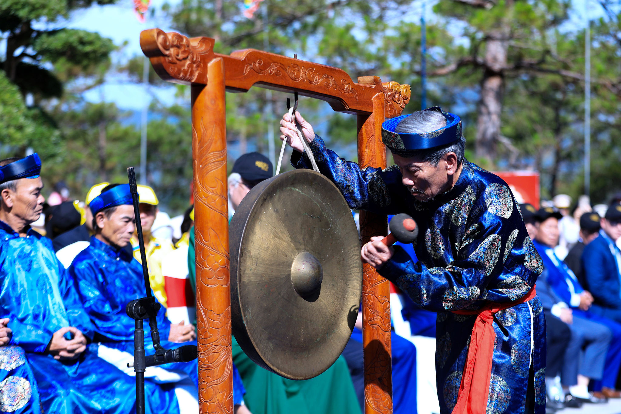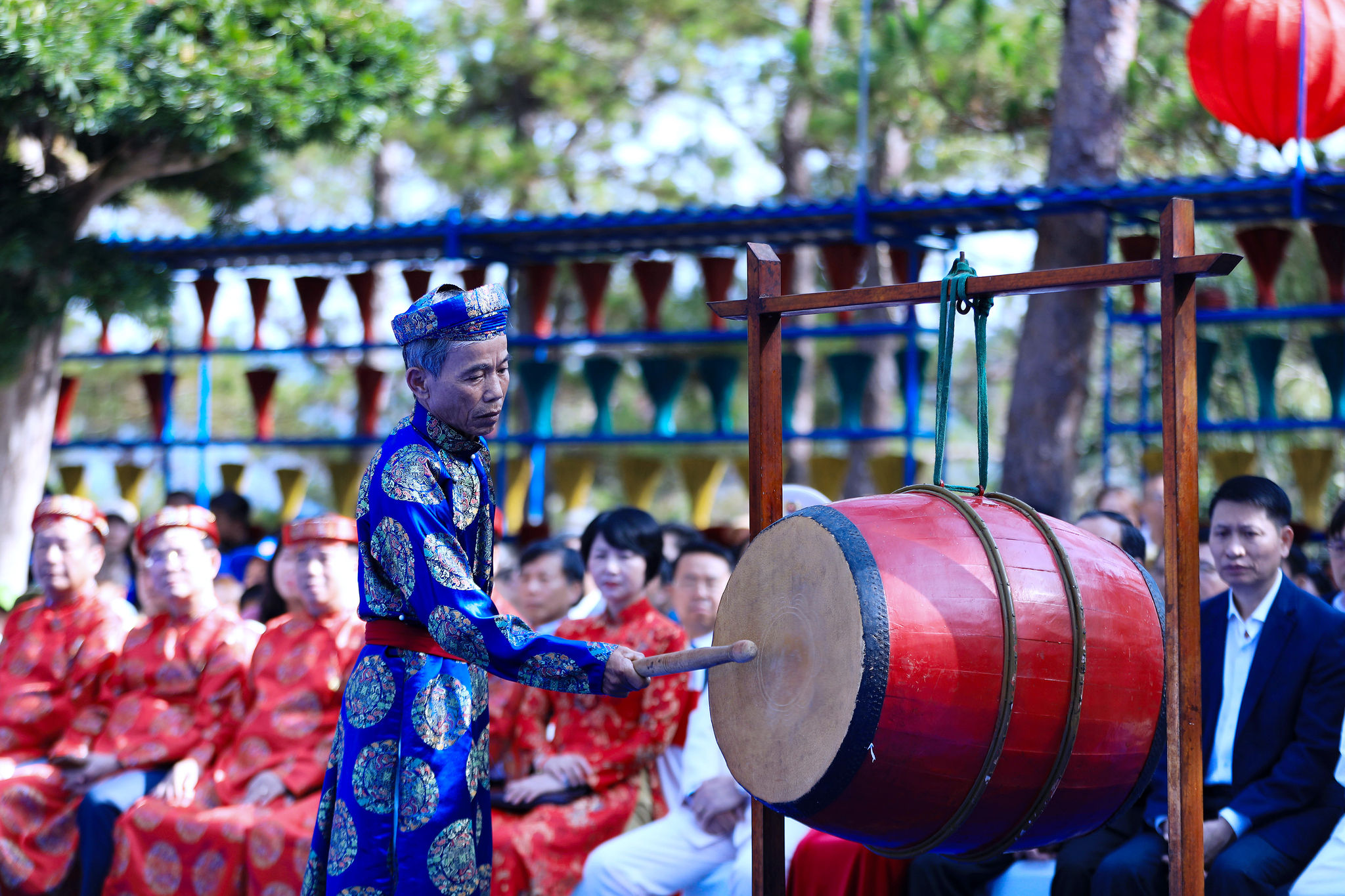 Khai chiêng mở đầu nghi lễ Tế Truyền thống tại Lễ Dâng hương Quốc Tổ