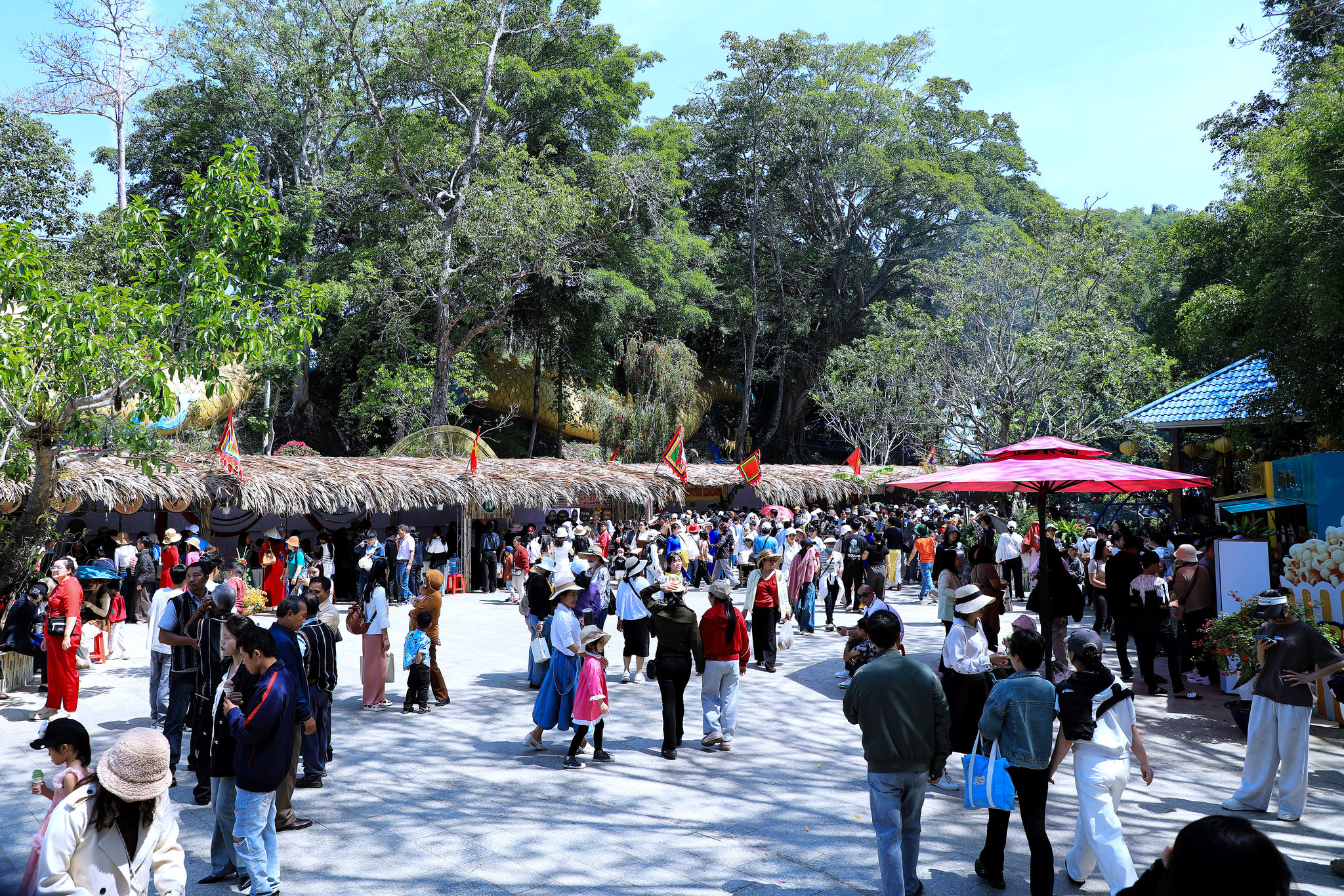 Không gian lễ hội được bố trí thành nhiều khu vực, từ trò chơi, ẩm thực đến biểu diễn nghệ thuật, thu hút đông đảo người dân tham gia.