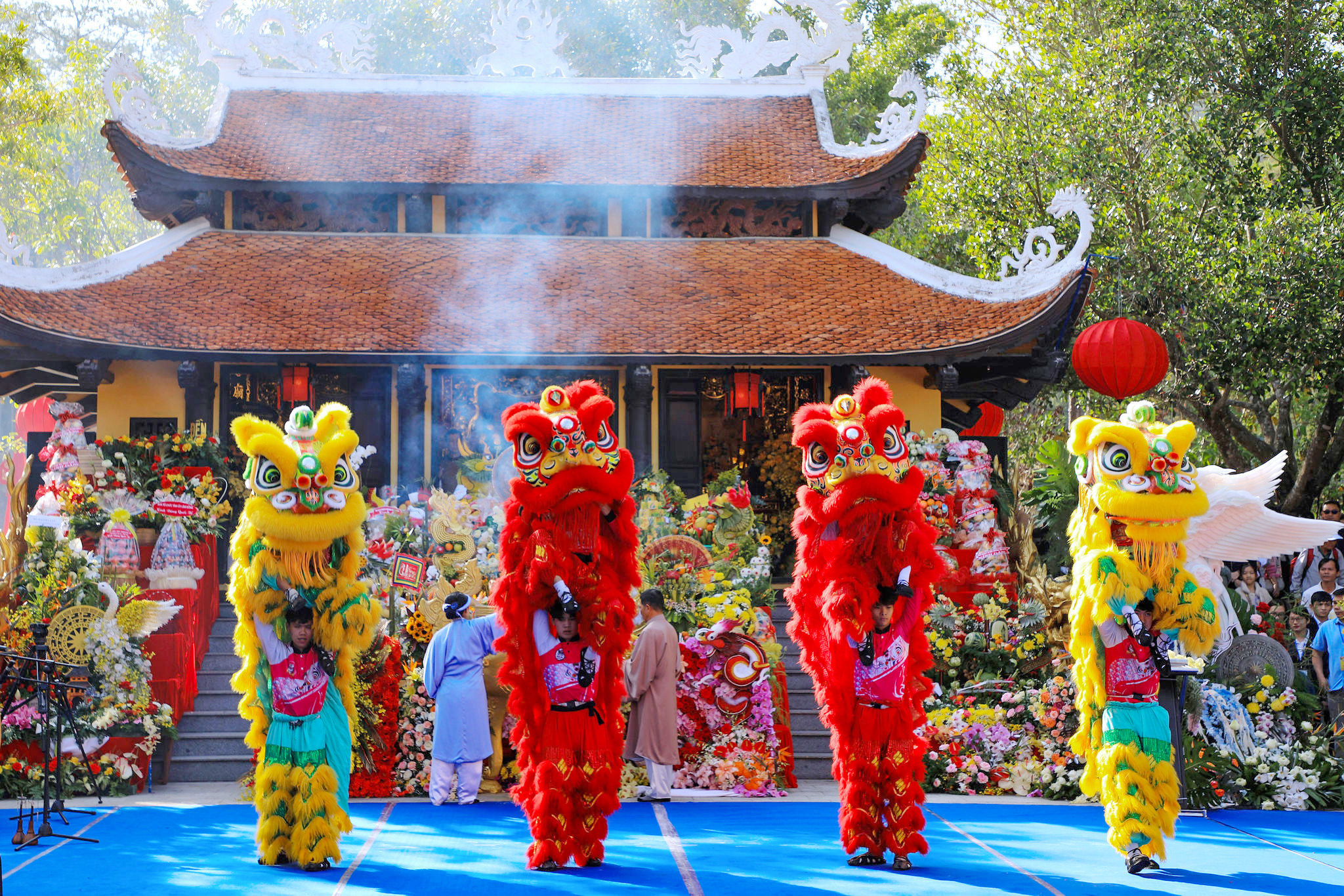 Tiết mục múa lân mở màn Lễ hội Giỗ Tổ Hùng Vương năm 2026 tại Đền thờ Âu Lạc, tỉnh Lâm Đồng