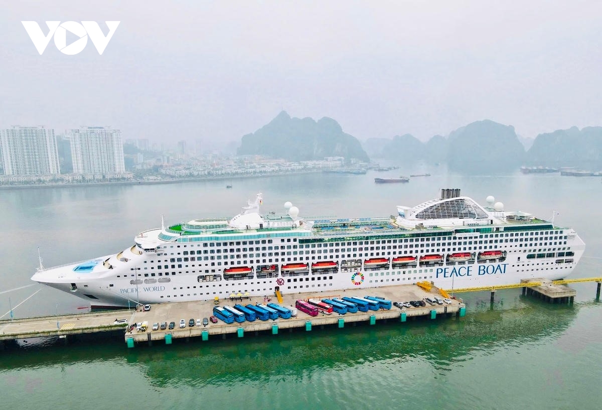 Tàu Pacific World, đây là chuyến tàu đầu tiên từ Nhật Bản đã cập cảng tàu khách quốc tế Hạ Long, đưa gần 1.700 du khách đến Quảng Ninh vào sáng 30/4/2025.