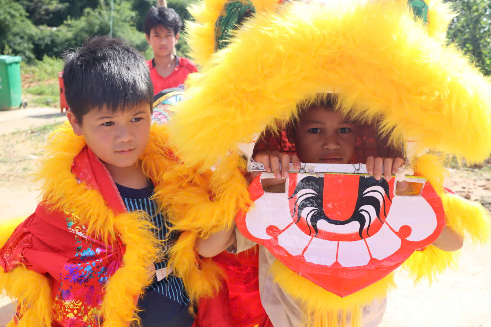 Các em học sinh được múa lân