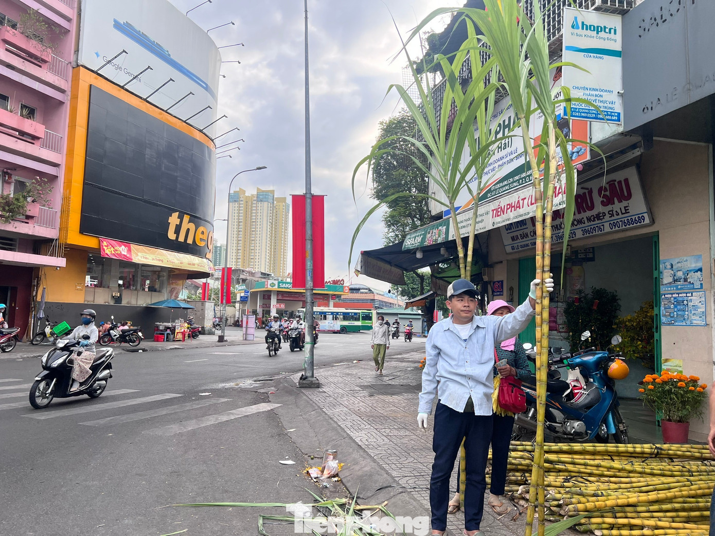 Bà Đặng Thị Phương có hơn 20 năm bán mía tại đây cho biết bà đưa 4.000 cây mía "hàng tuyển" đến phục vụ người dân TPHCM với giá khoảng 100.000 đồng/cặp. Đây là loại mía vàng trồng ở tỉnh Tiền Giang, thời gian trồng từ tháng 5 âm lịch đến dịp Tết là "đủ tuổi" để đem bán. "Tôi đưa mía lên tối mùng 7, hiện đã bán hơn 1.000 cây rồi. Năm nay, sức mua rất tốt, hy vọng trong chiều và tối nay bán hết hàng" - bà Phương nói.