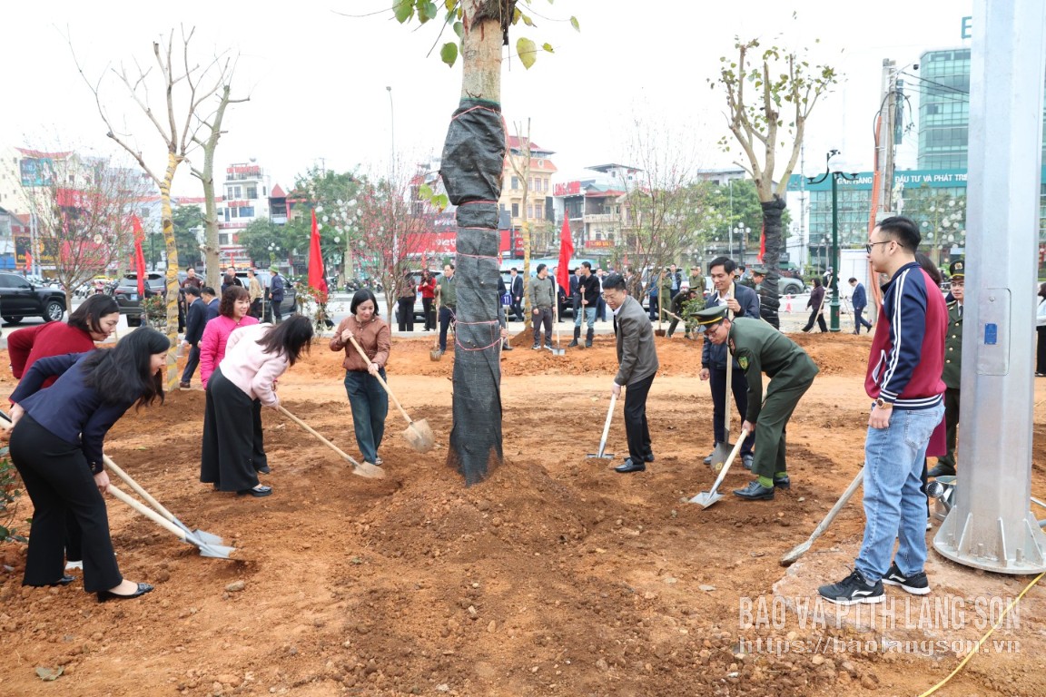 Các đồng chí Thường trực Tỉnh ủy dự lễ phát động "Tết trồng cây đời đời nhớ ơn Bác Hồ" và trồng cây tại công viên bờ sông Kỳ Cùng, phường Đông Kinh