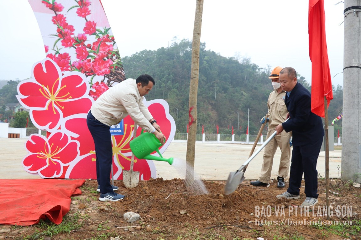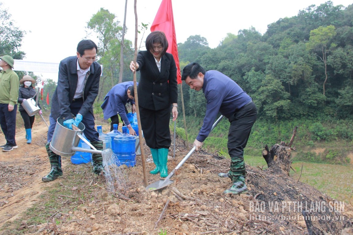 Lãnh đạo xã Cai Kinh và người dân trồng cây đầu xuân trên địa bàn xã
