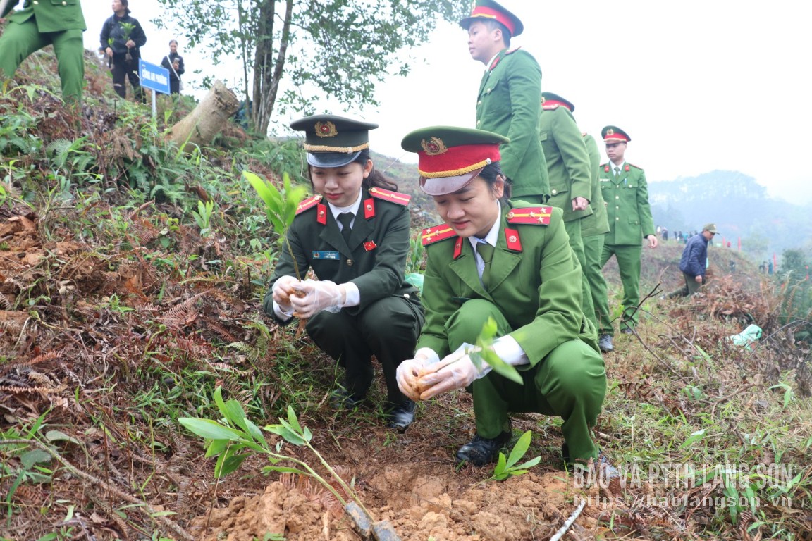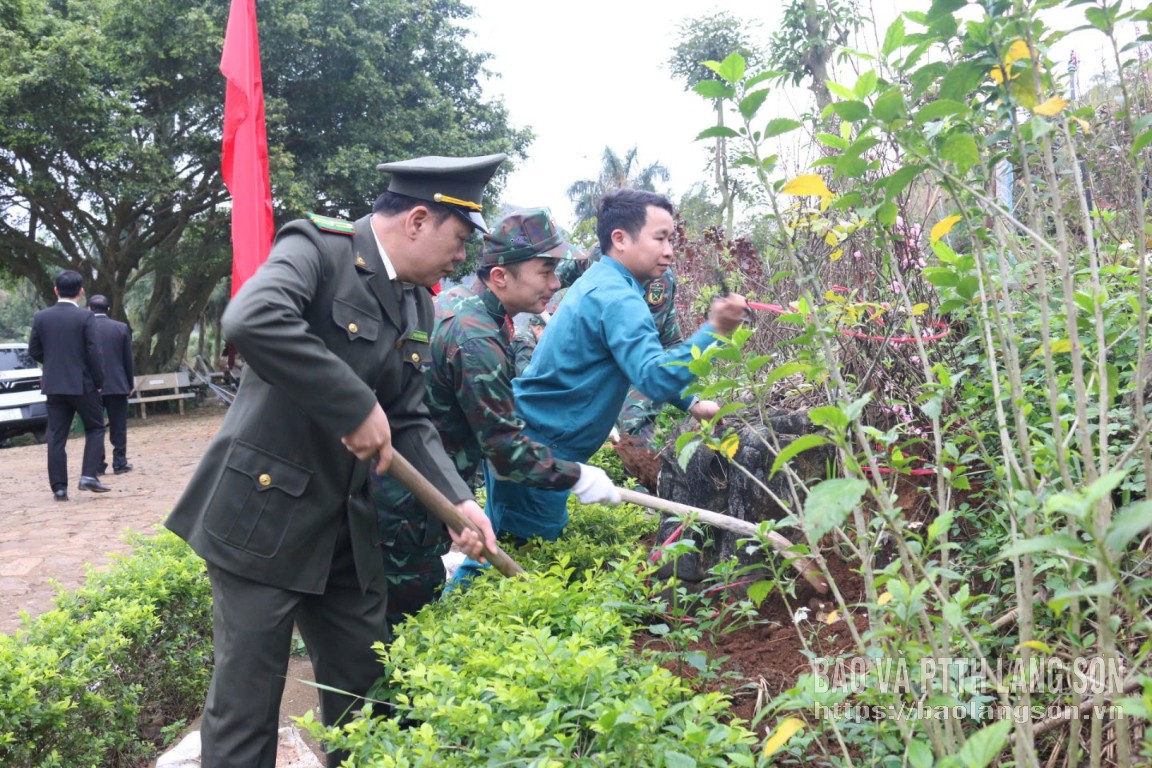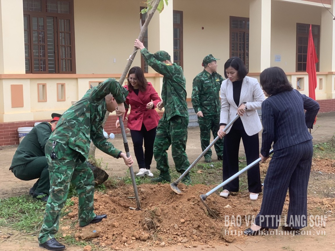 Các lực lượng trồng cây đầu xuân tại xã Đồng Đăng