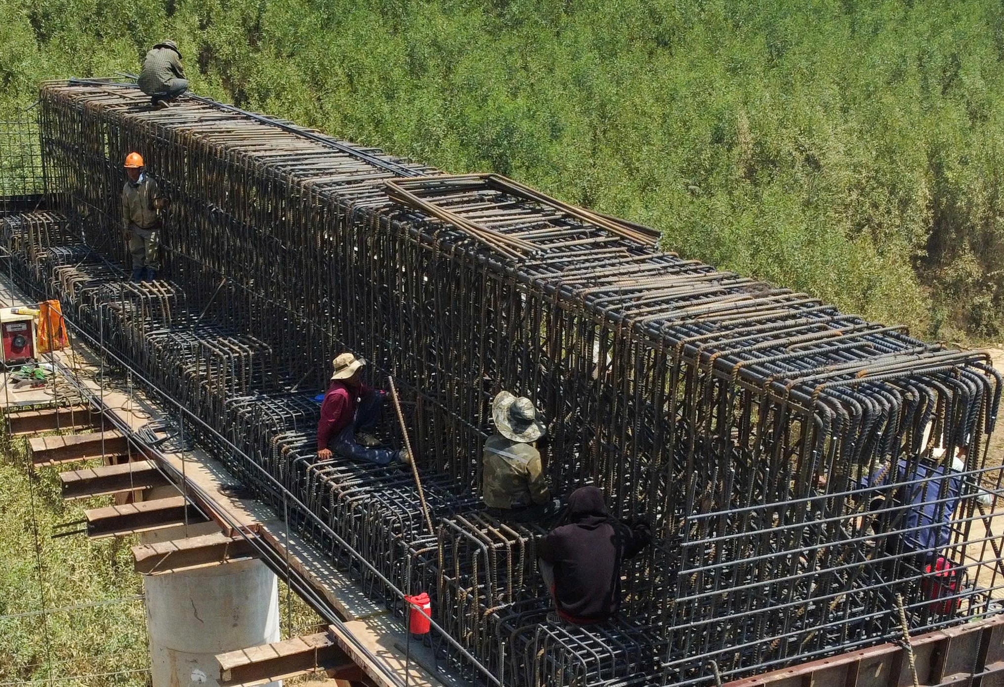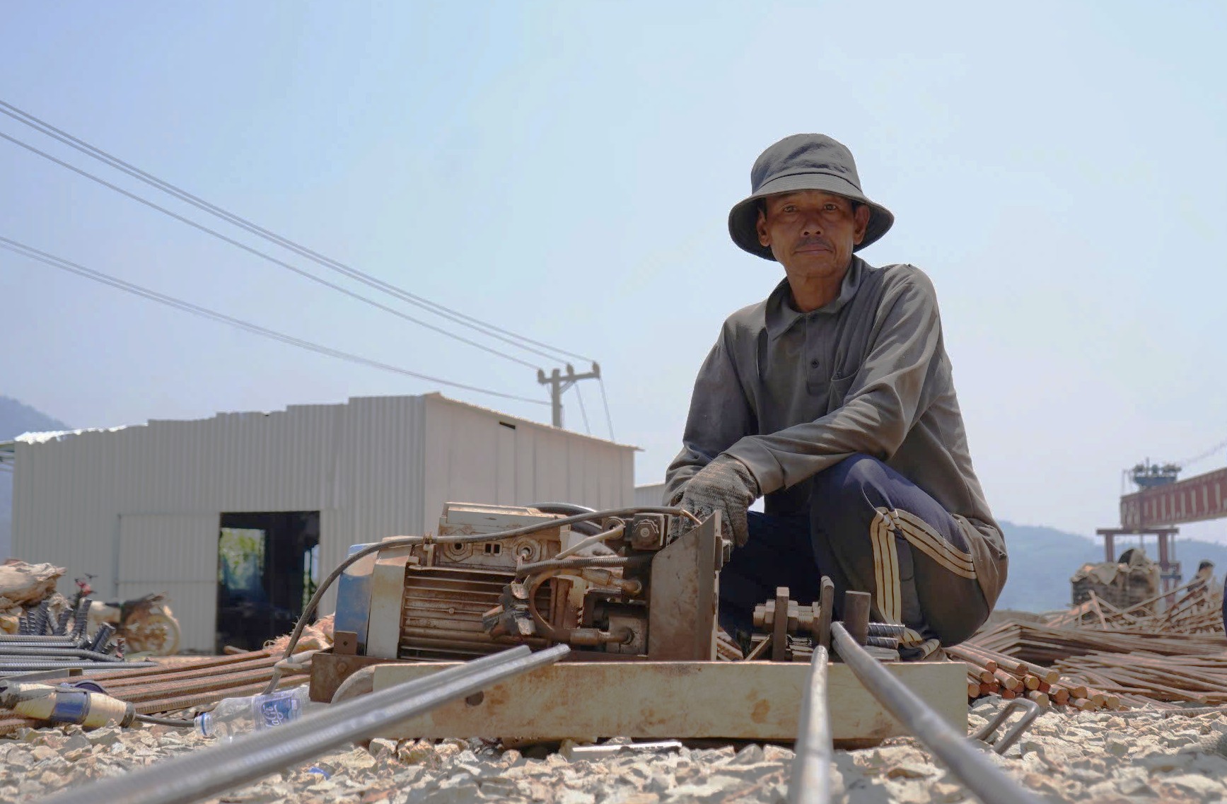 Công nhân nhà thầu Bắc Trung Nam thi công cầu Hòn Lai