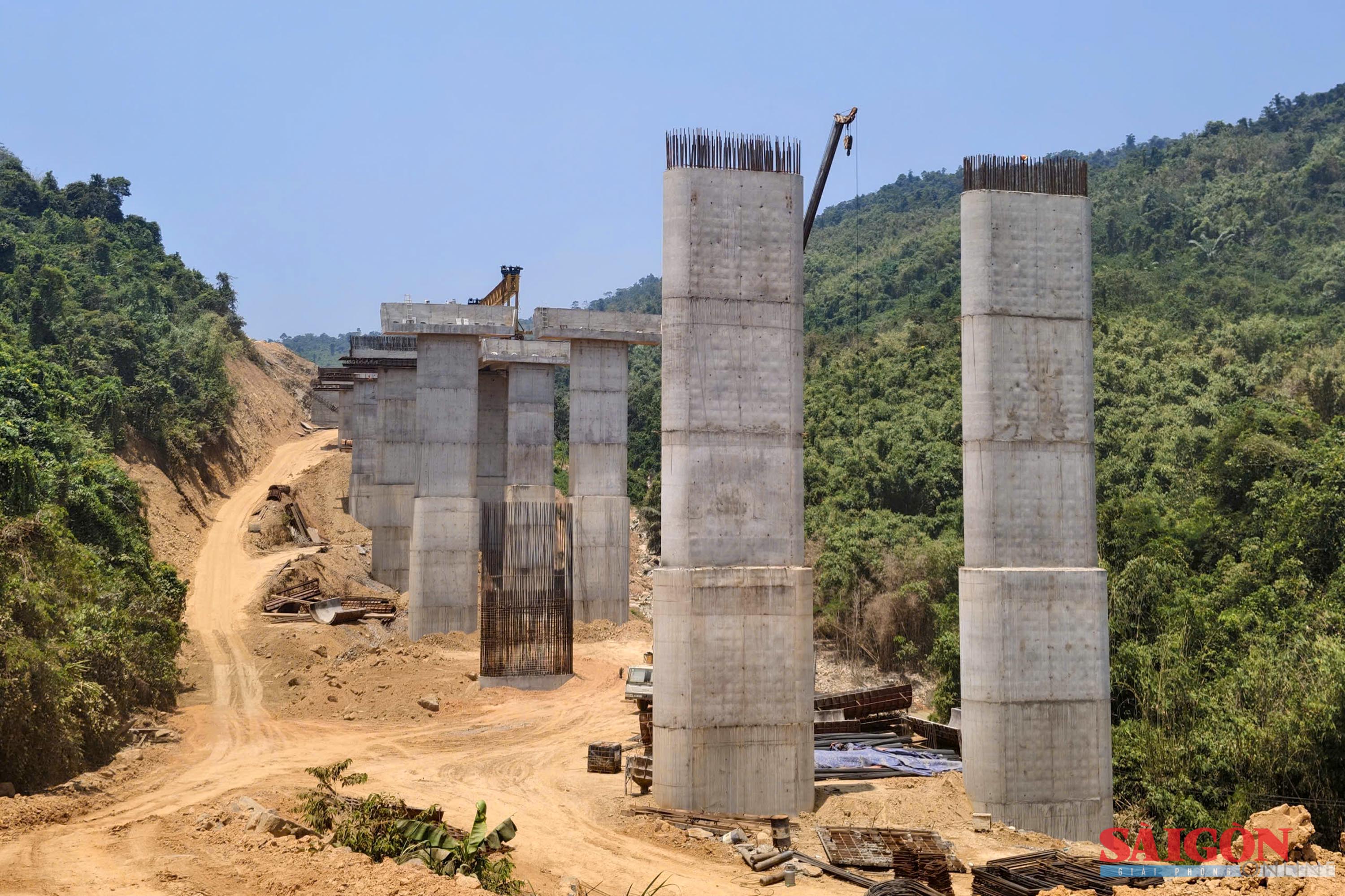 Để thi công các cầu, tại một số vị trí, nhà thầu phải xây dựng trụ cầu cao hàng chục mét