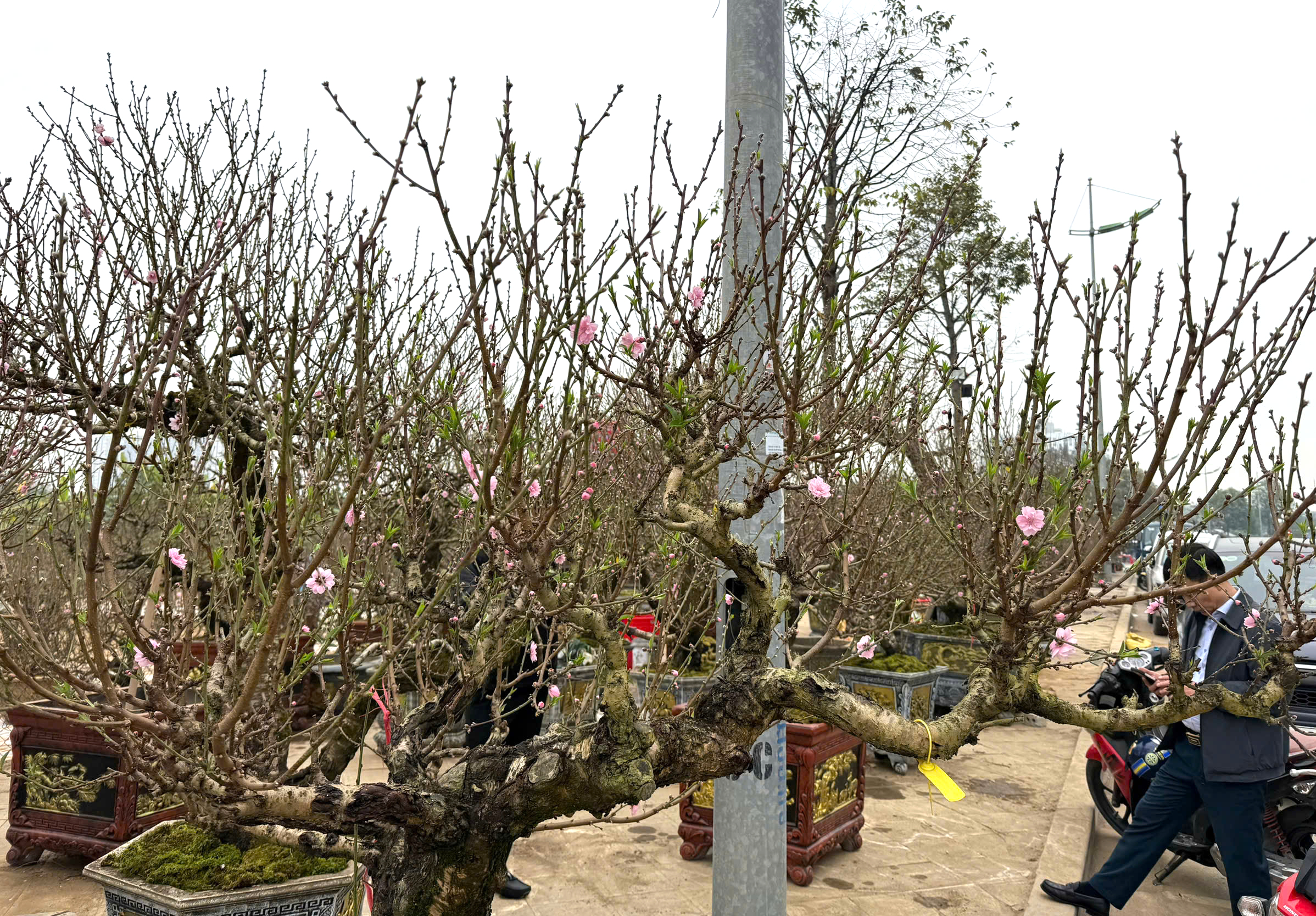 Anh Phạm Xuân Công, chủ gian hàng bán đào Mộc Châu cho biết: Tôi mua 200 gốc đào tuổi thọ 5 - 7 năm từ Mộc Châu về đây được hơn 1 tuần. Tính đến thời điểm này cho thuê 15 cây và bán 15 cây. Giá dao động thuê từ 10 - 15 triệu đồng, còn giá bán tùy thuộc vào từng cây, cây đẹp thì khoảng 30 triệu đồng.