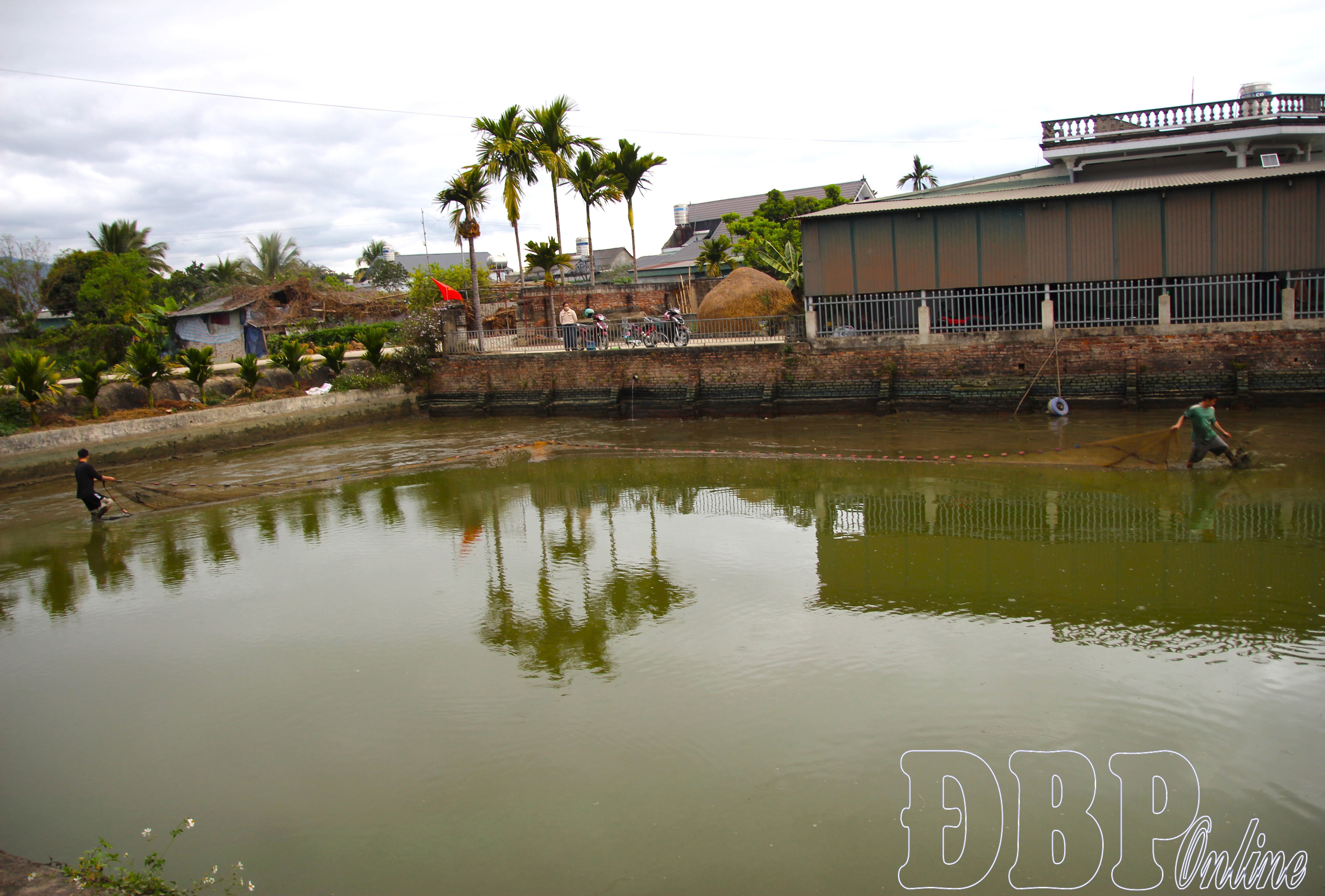 Tại gia đình ông Nguyễn Văn Hằng, thôn Hồng Thanh 7, xã Thanh Nưa, từ sáng ngày 21 âm lịch đã bắt đầu thu hoạch cá. Cá sau khi đánh bắt dưới áo sẽ được đưa vào trong những bể nước nhỏ (còn gọi là lên tráng), bơm oxy giúp cá làm quen với môi trường mới.