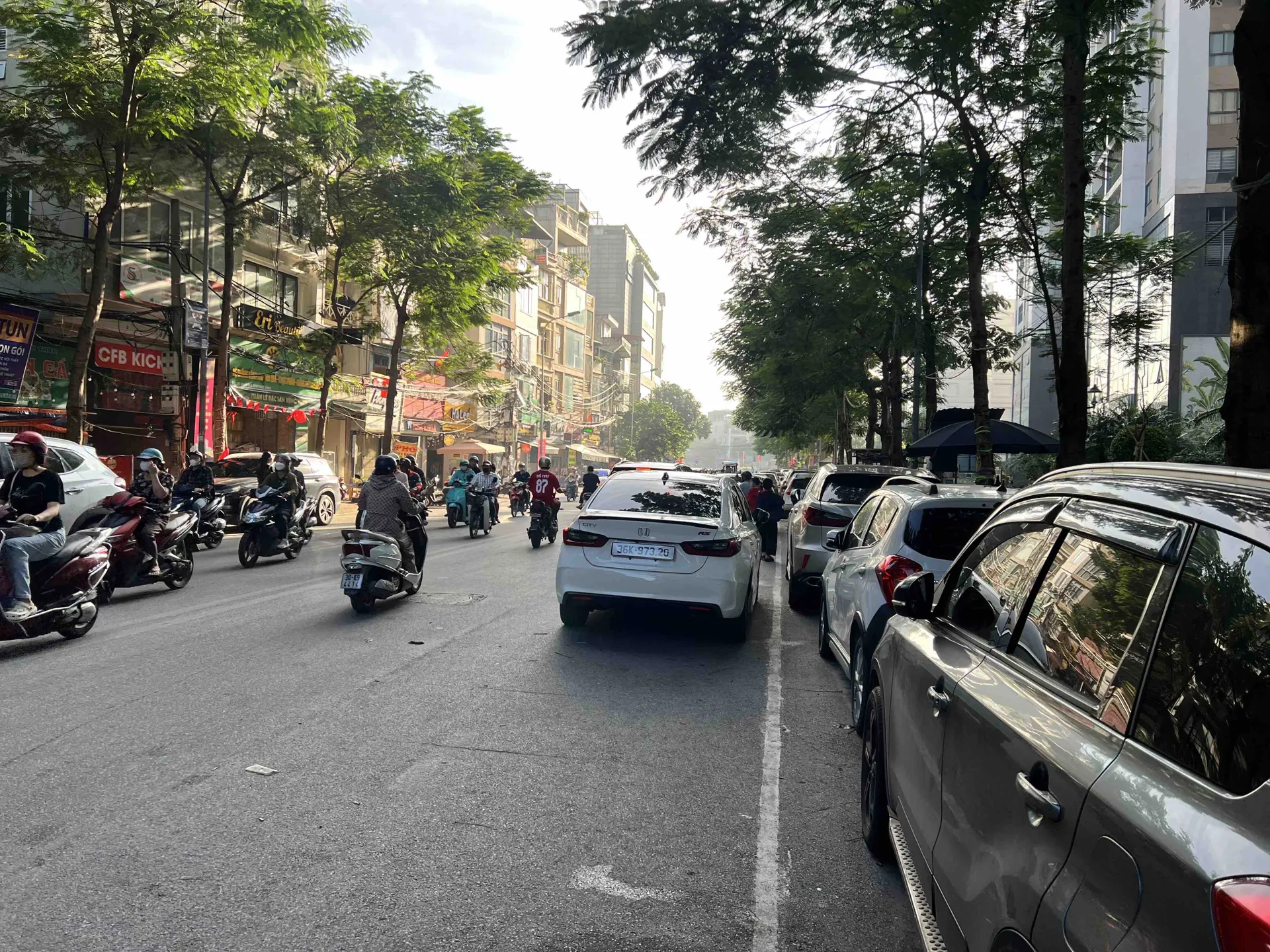 Tại đây, một phần diện tích không nhỏ lòng đường, vỉa hè đã bị “chia năm, xẻ bảy” làm nơi trông giữ, dừng đỗ phương tiện. Thậm chí, tại một số khu vực, nhiều cơ sở kinh doanh ngang nhiên sắp xếp phương tiện dừng đỗ cắt ngang mặt đường, khiến lòng đường bị thu hẹp, tạo thành những nút thắt cổ chai khiến việc di chuyển gặp rất nhiều khó khăn, đặc biệt vào các khung giờ cao điểm.
