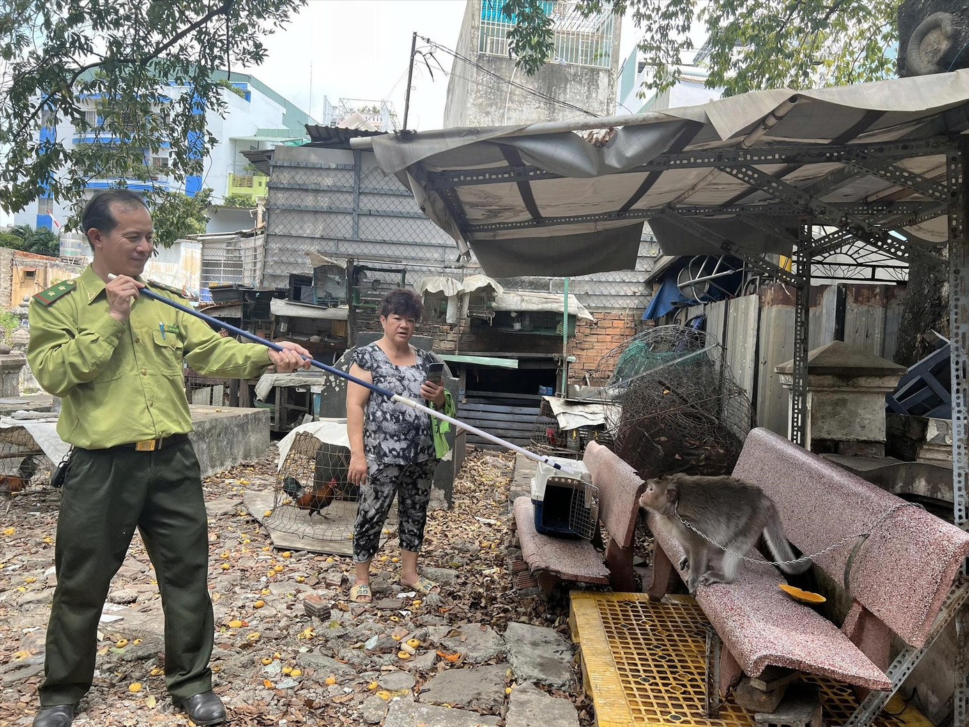 Một buổi sáng đầu tuần, PV Tiền Phong theo chân các ông Nguyễn Quang Hoàng và Cầm Văn Tùng - kiểm lâm viên trực thuộc Chi cục Kiểm lâm TPHCM trên chiếc xe chuyên dụng xuất phát từ Thảo Cầm Viên Sài Gòn. Thùng xe chất đầy những lồng chuyên dụng, vợt, túi lưới, ống tiêu, thuốc gây mê... Không khí căng thẳng bởi điện thoại các nhân viên kiểm lâm liên tục đổ chuông: một gia đình muốn bàn giao chú khỉ nuôi nhiều năm. Nơi khác, người dân thông tin vừa bắt được ba con trăn lớn và một con kỳ đà đi lạc... Ông Tùng trầm giọng: “Cứu hộ phải khẩn trương, không kể ngày đêm. Chậm một chút là nguy hiểm cho cả người lẫn động vật”.