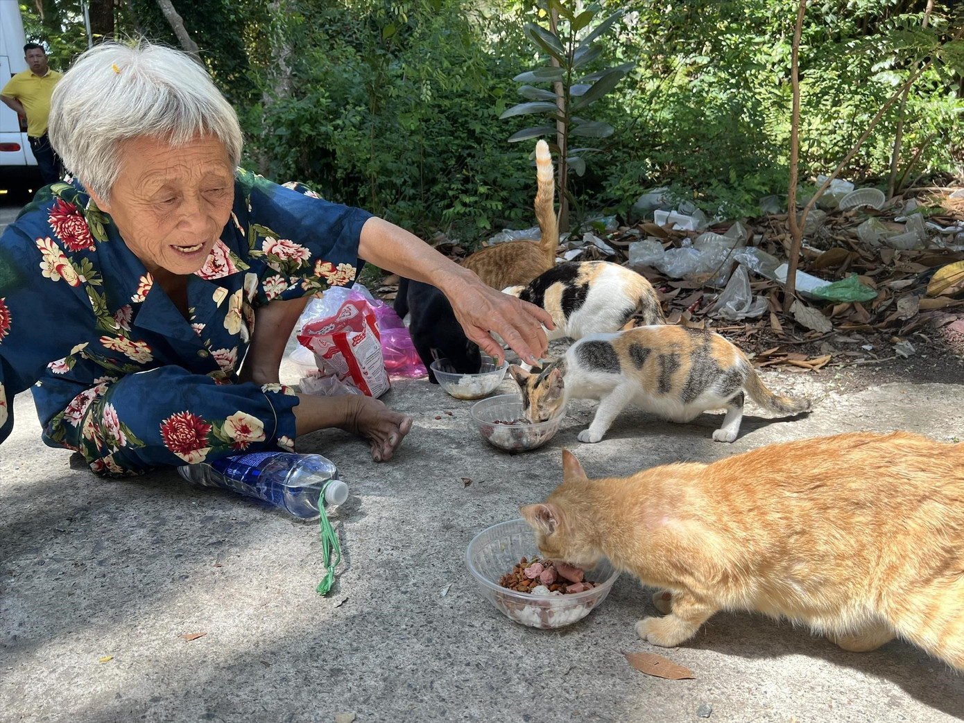 Bà Mai chăm sóc đàn mèo hoang ở Thảo Cầm Viên, yêu thương như con của mình ảnh: U.P
