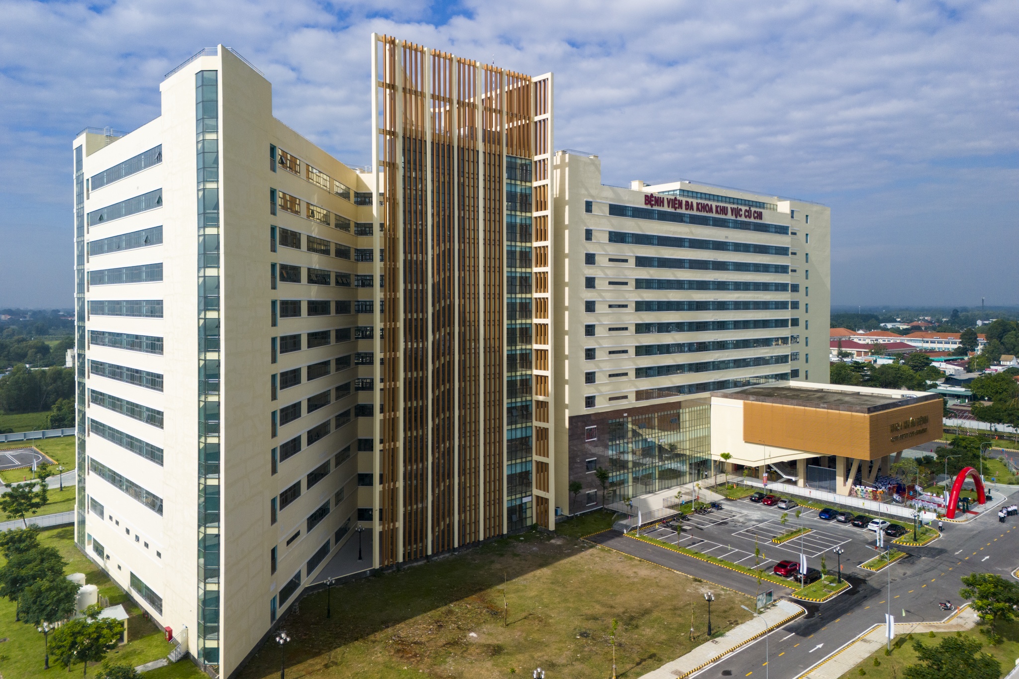 Bệnh viện Đa khoa khu vực Củ Chi với thiết kế ấn tượng, hiện đại và đầy đủ công năng. Ảnh: Quỳnh Danh.