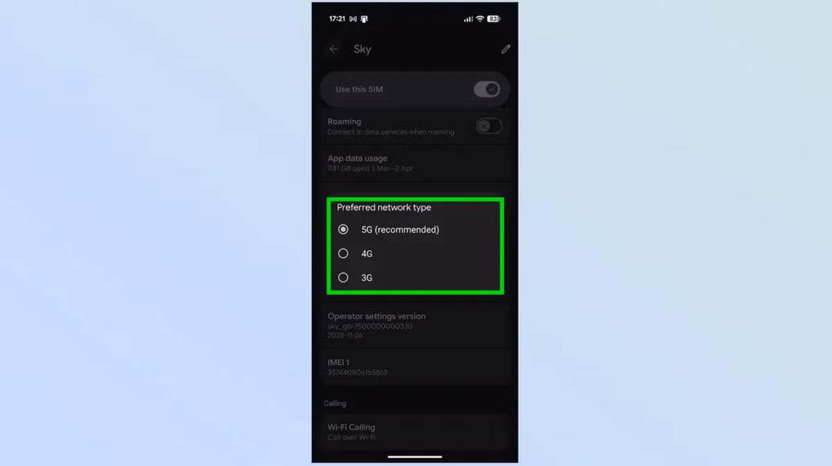 Vào Cài đặt (Settings) > Mạng - Network (hoặc Kết nối) > SIM > Chọn SIM của bạn > Loại mạng ưu tiên (Preferred Network Type) > 4G/LTE