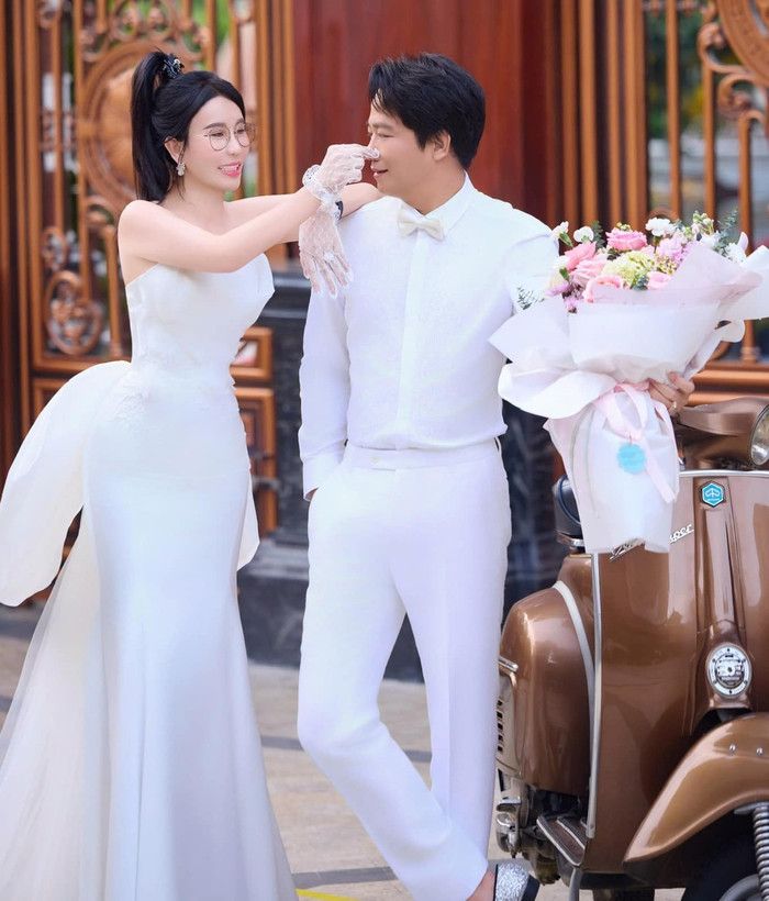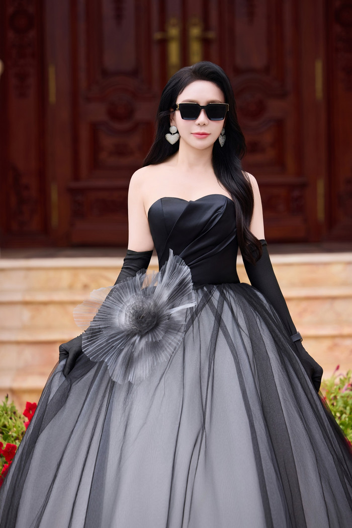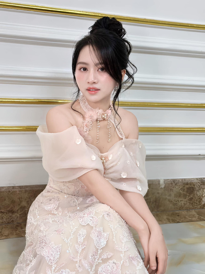 Bà chủ Thẩm mỹ viện Mailisa ưu tiên váy có phần thân trên thường được thiết kế corset ôm sát hoặc cổ chữ V sâu vừa đủ thanh lịch, kết hợp tay áo phồng nhẹ hoặc kiểu trễ vai quyến rũ. Ảnh: FBNV