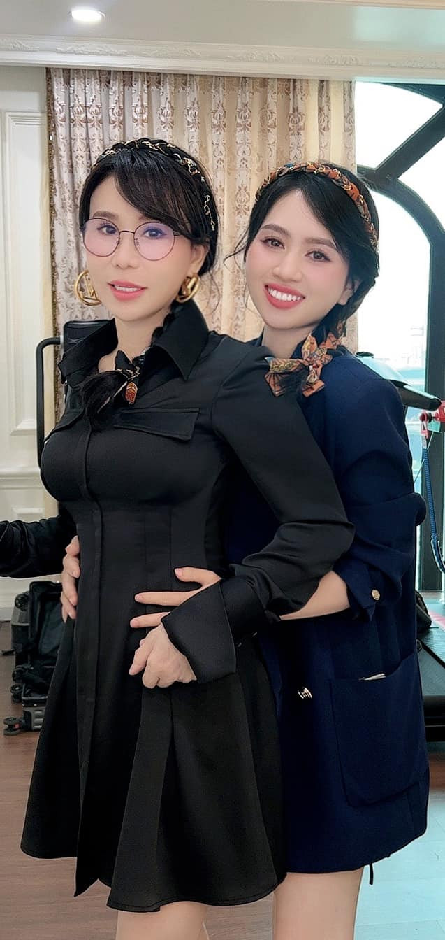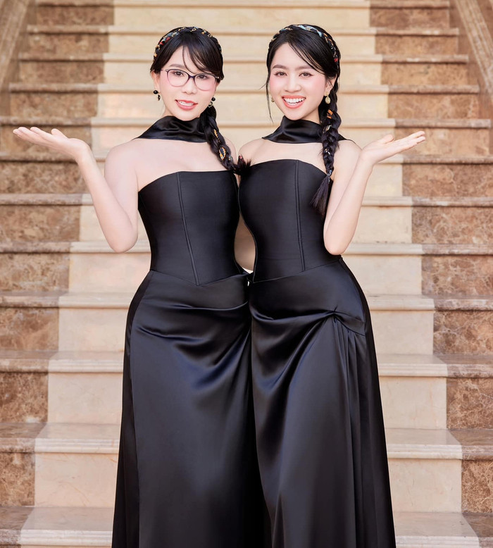 Lớp trang điểm của cả hai luôn ở mức hoàn hảo: làn da căng bóng không tì vết nhờ công nghệ thẩm mỹ cao cấp, phần má hồng nhẹ nhàng, đôi môi căng mọng tông hồng đào hoặc đỏ cherry, đôi mắt được nhấn bằng phấn mắt ánh kim và eyeliner sắc nét. Ảnh: FBNV