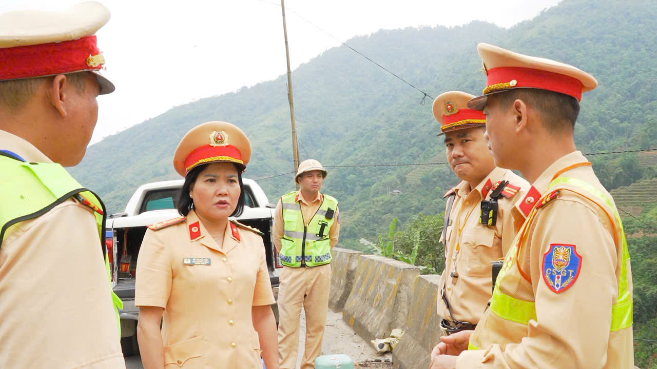 Thượng tá Vũ Thị Hải Yến, Phó trưởng phòng CSGT, Công an tỉnh Lào Cai trực tiếp kiểm tra, chỉ đạo công tác bảo đảm trật tự ATGT trên tuyến đường đi Sa Pa.