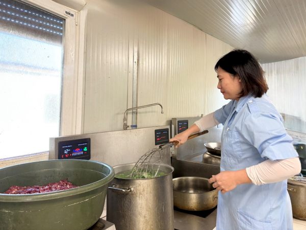 Sự bền bỉ của các nữ quân nhân thể hiện rõ trong từng công việc thầm lặng hằng ngày. Tại khu bếp hậu cần của Đội Công binh số 4, khi nhiệt độ ngoài trời đã chạm ngưỡng 40 độ C, hơi nóng từ những bếp lửa càng khiến không gian thêm ngột ngạt. Giữa gian bếp ấy, Thiếu tá quân nhân chuyên nghiệp Nguyễn Thị Vân Anh cùng các chị em trong tổ hậu cần vẫn miệt mài chuẩn bị từng bữa ăn cho hàng trăm cán bộ, chiến sĩ.