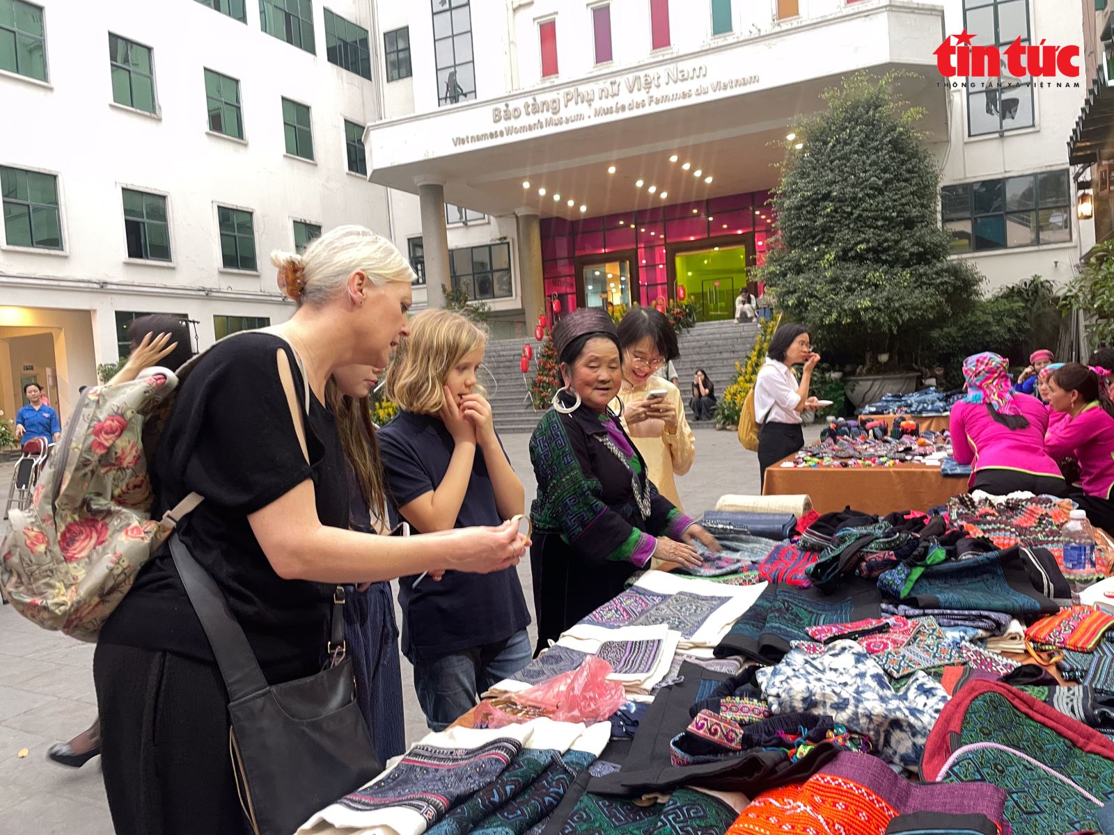 Du khách hào hứng tìm hiểu về các sản phẩm thủ công của đồng bào dân tộc tại Sa Pa