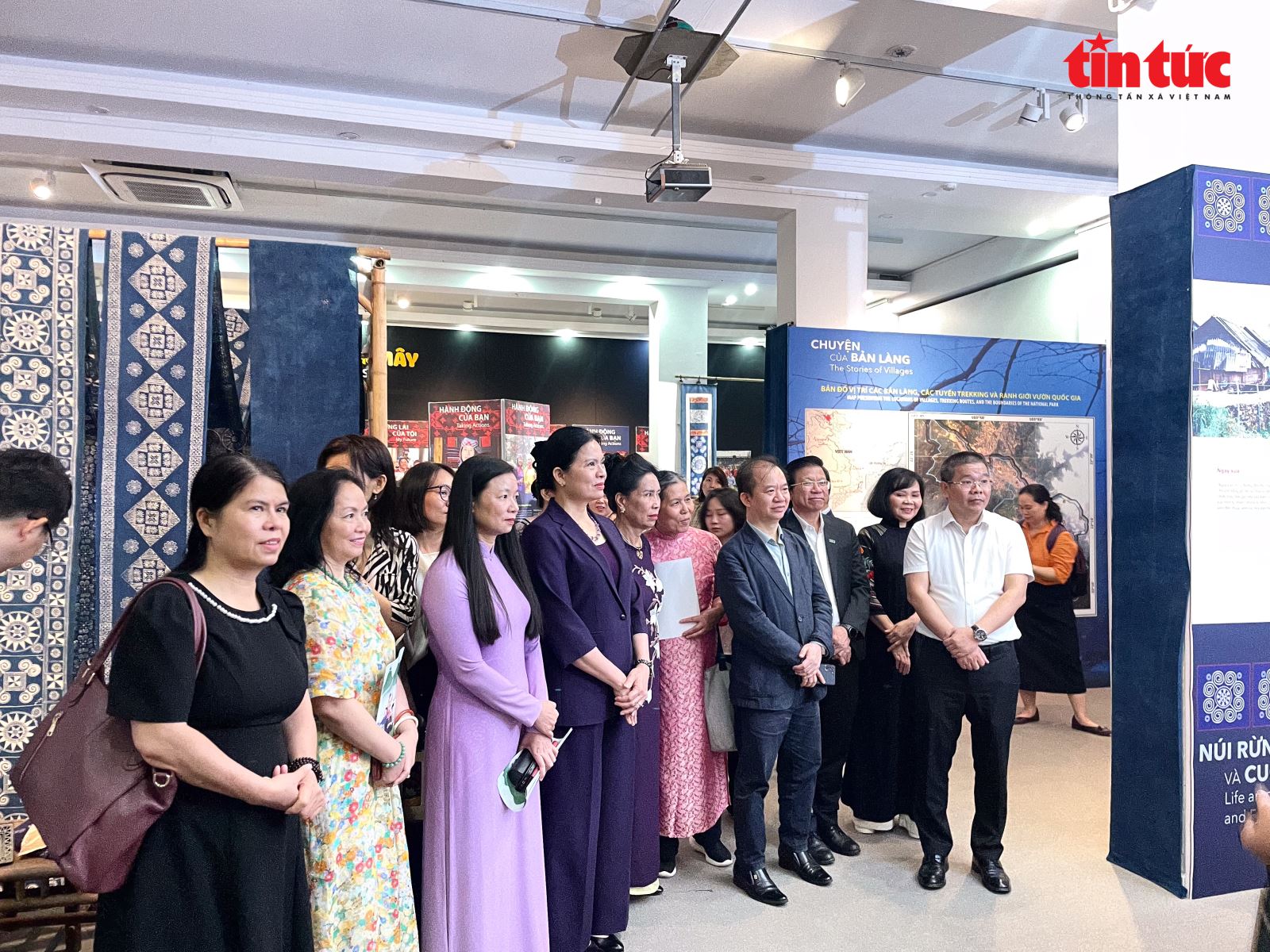Khách tham quan lắng nghe những câu chuyện về phụ nữ vùng cao qua phần giới thiệu các tác phẩm trưng bày.