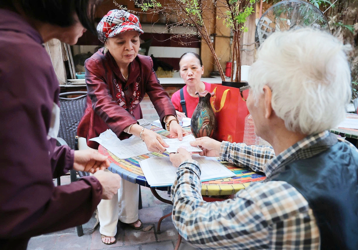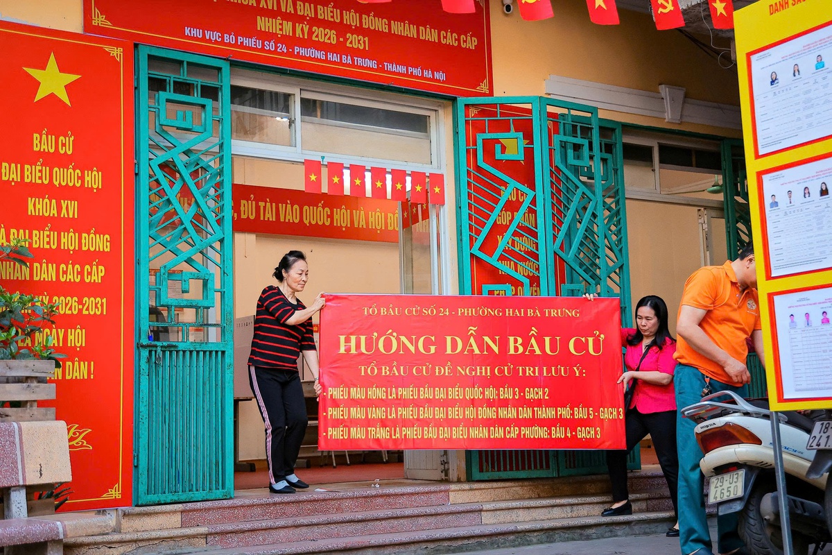 Tại phường Hoàn Kiếm, Hà Nội, các cán bộ Hội phụ nữ ở cơ sở đang tập trung làm công tác tuyên truyền, mang tấm thẻ cử tri đến tận tay người dân, cùng lời dặn dò chu đáo về thời gian và địa điểm bỏ phiếu.