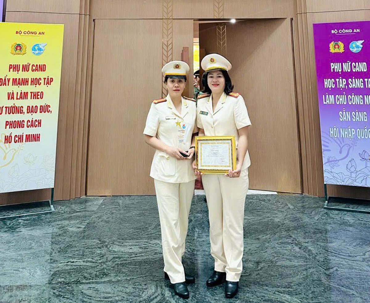 Trung tá Nguyễn Thị Lệ (bên phải), 1 trong 62 nữ Công an cơ sở tiêu biểu toàn quốc, được Bộ Công an biểu dương danh hiệu "Nữ Công an cơ sở xuất sắc năm 2024".