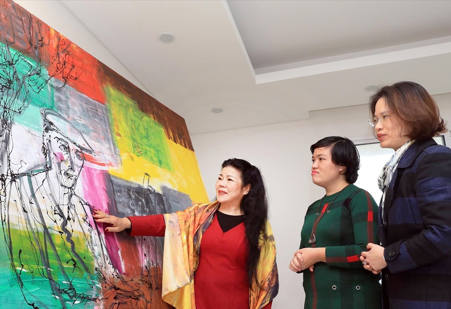 “Mỗi lần tranh của tôi được trao tặng cho một nguyên thủ quốc gia, tôi lại nghĩ: Đây là thông điệp hòa bình của Việt Nam. Thế hệ cha tôi đã hy sinh trong chiến tranh, thế hệ chúng tôi may mắn hơn, được dùng nghệ thuật để kết nối các dân tộc”, ánh mắt bà sáng lên khi nói về điều này.