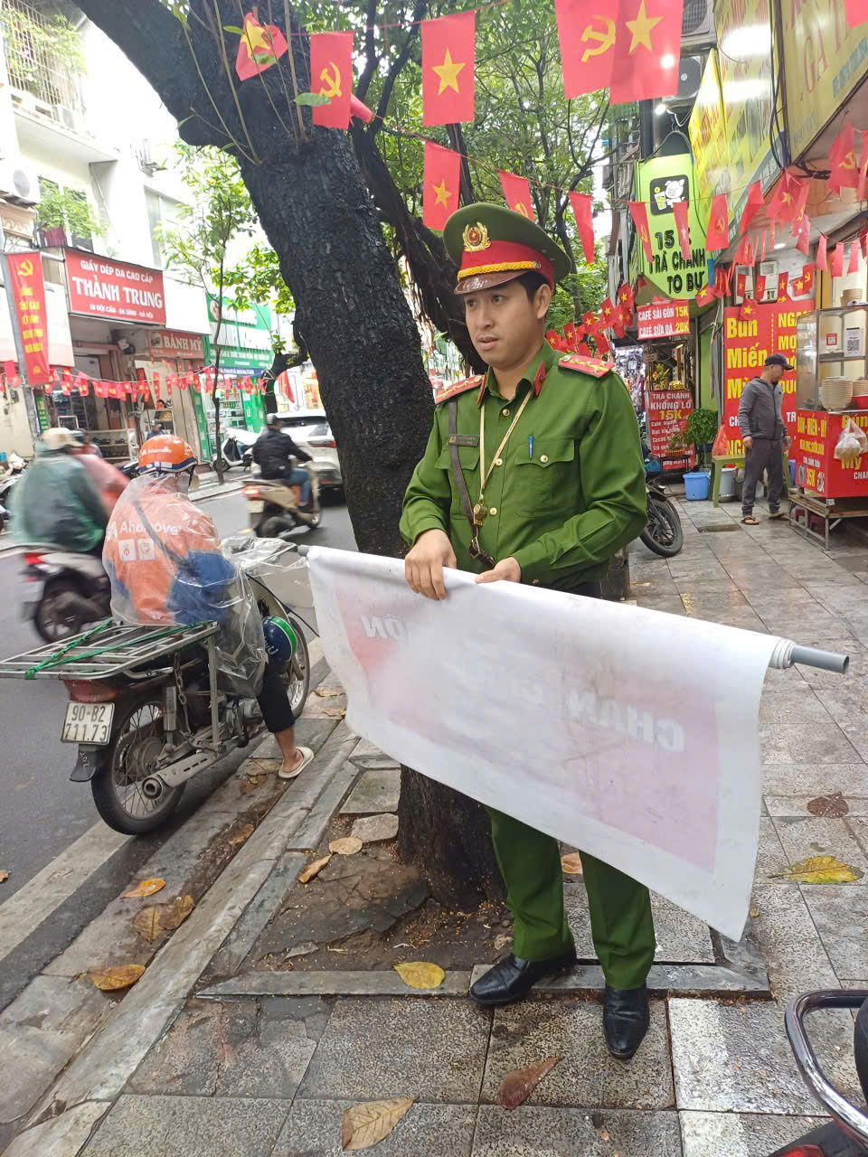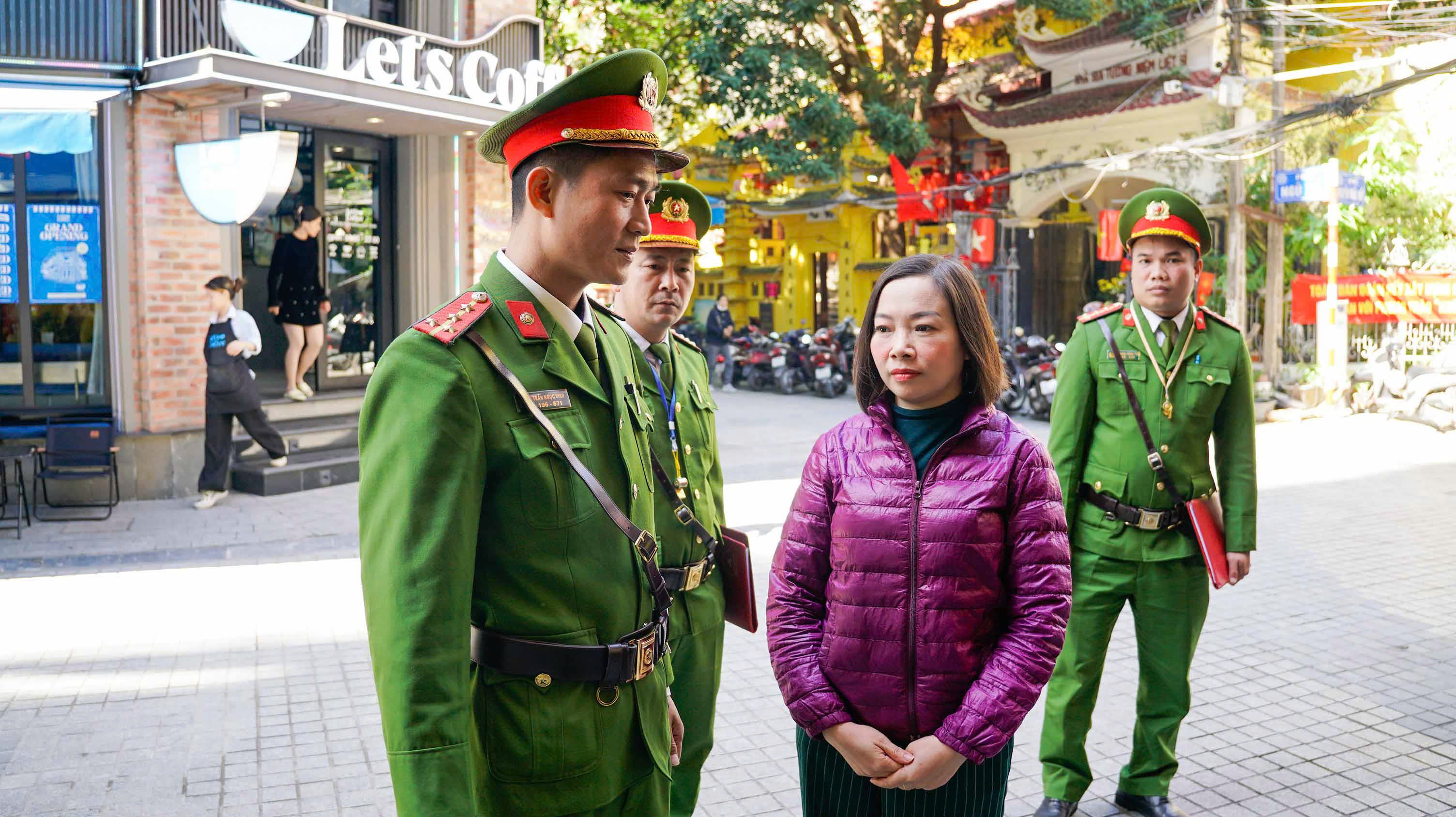 Tại mỗi tuyến phố, cán bộ, chiến sĩ trực tiếp gặp gỡ các hộ kinh doanh, chủ cơ sở và từng hộ dân để tuyên truyền, đồng thời ký cam kết thực hiện nghiêm các quy định: không lấn chiếm vỉa hè, lòng đường, không dựng biển quảng cáo sai phép, không tập kết vật dụng gây cản trở giao thông, đỗ xe đúng nơi quy định