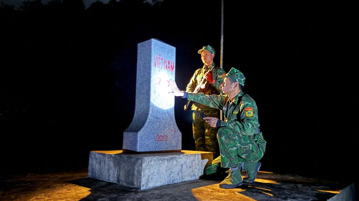 Đồn Biên phòng Sông Thanh, Bộ đội Biên phòng tỉnh Quảng Ngãi tuần tra bảo vệ cột mốc 743 biên giới Việt Nam-Lào. Ảnh: Văn Tánh