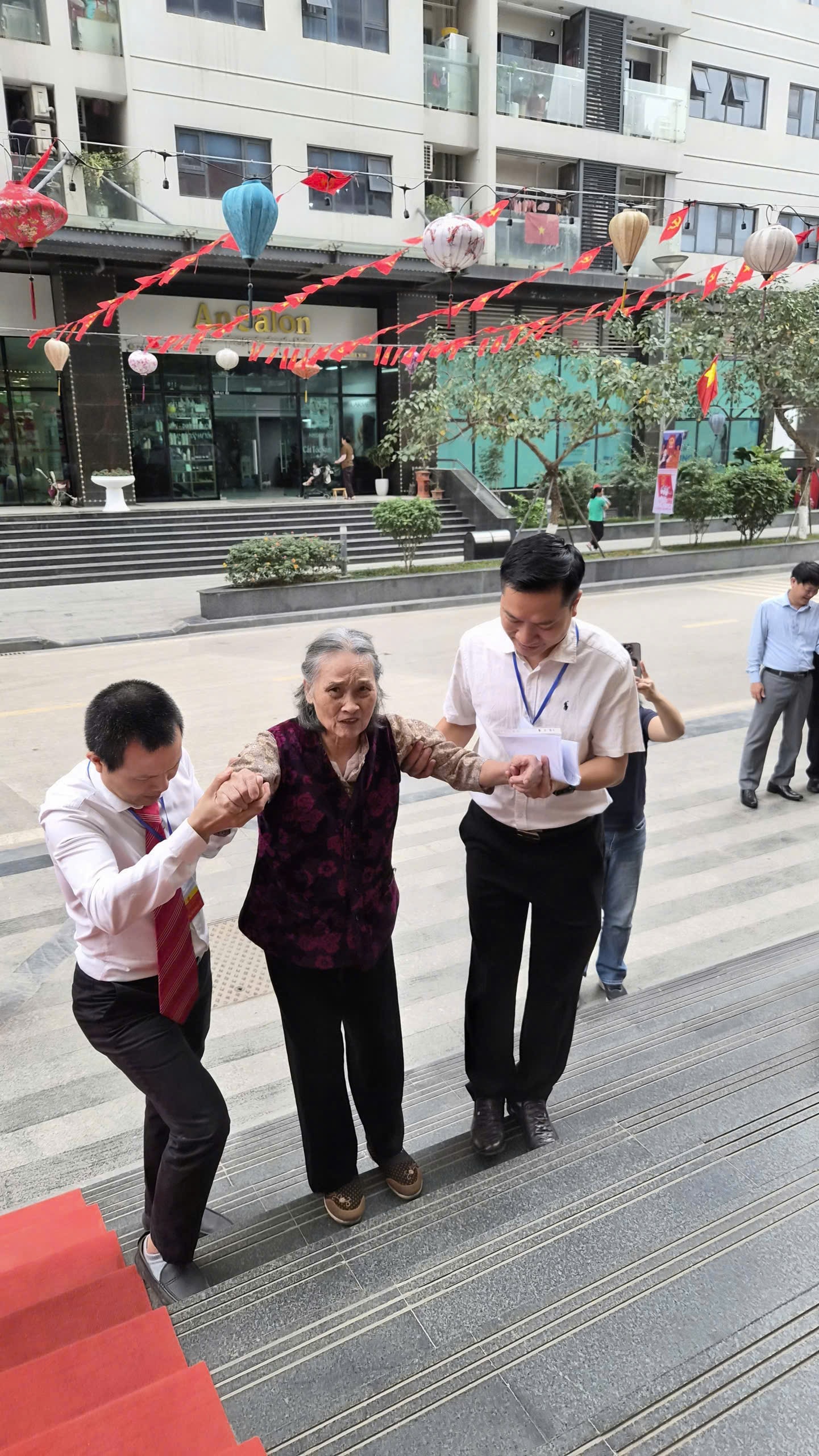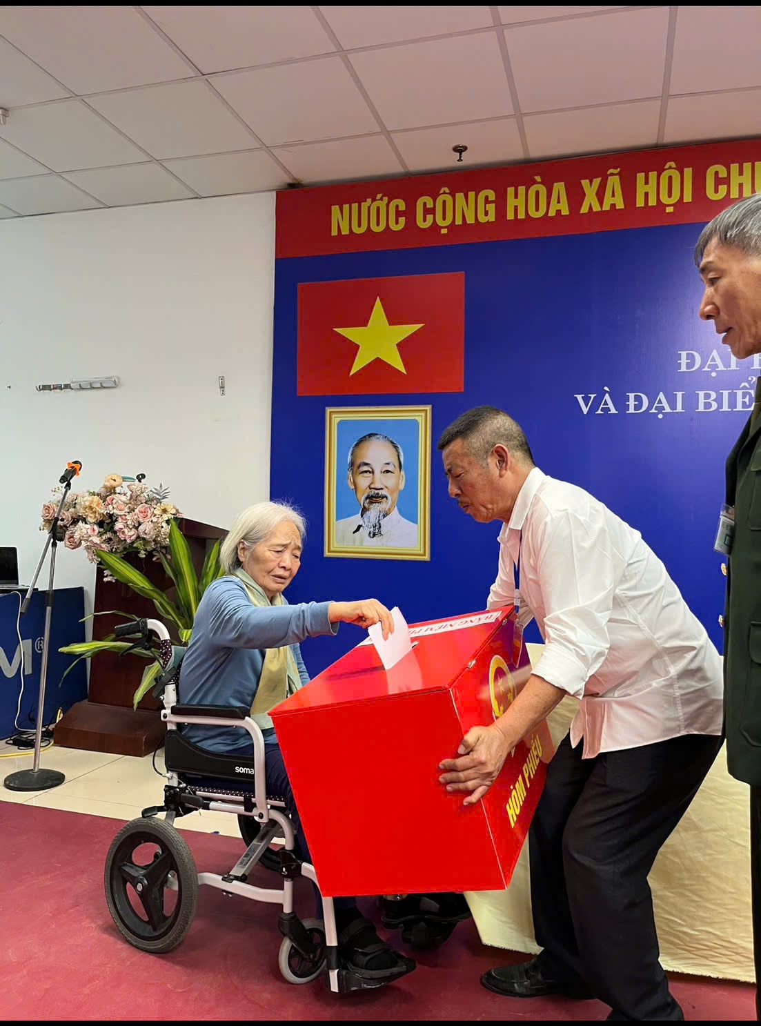 Sáng 15-3, tại các khu vực bỏ phiếu trên địa bàn phường, nhiều cử tri cao tuổi được cán bộ và lực lượng phục vụ bầu cử tận tình dìu đỡ, hỗ trợ di chuyển để thực hiện quyền công dân. Có cụ phải sử dụng xe lăn, có cụ cần người nắm tay khi bước qua từng bậc thềm, nhưng ai cũng cố gắng trực tiếp đến khu vực bỏ phiếu để tự tay cầm lá phiếu của mình.