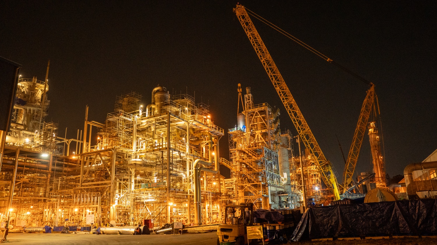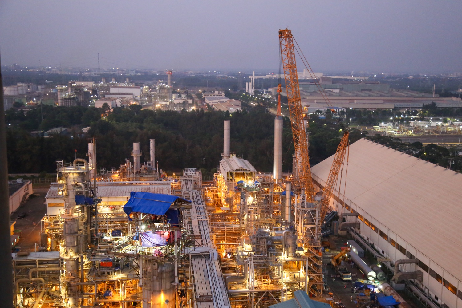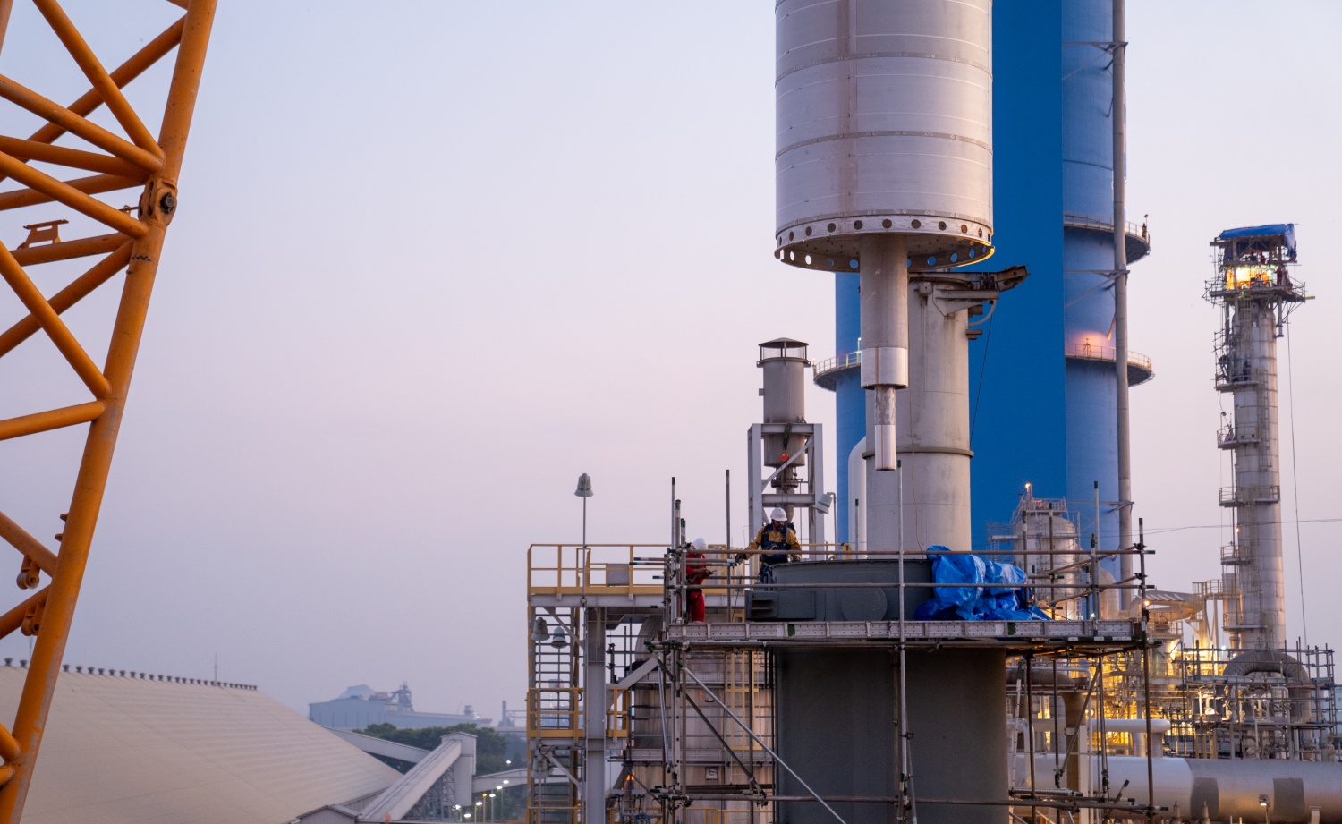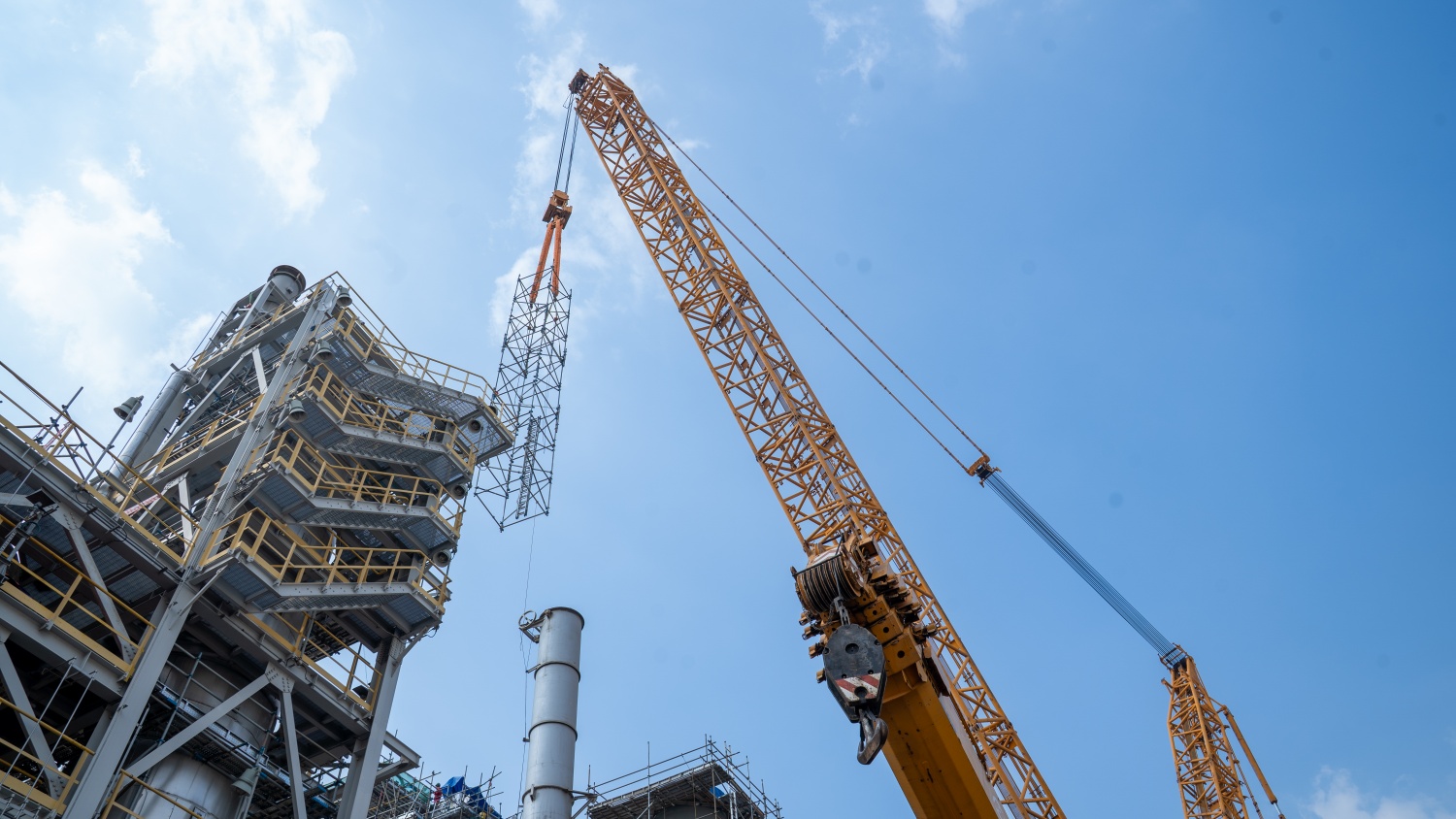 Để phục vụ công tác thay rọ xúc tác, Nhà máy Đạm Phú Mỹ đã huy động hai cần cẩu có sức nâng 1.250 tấn và 225 tấn, phối hợp nâng hạ các cấu kiện có trọng lượng lên tới 105 tấn. Tùy từng vị trí và cao độ thi công, hai cần cẩu được tính toán, phân tải và phối hợp linh hoạt nhằm bảo đảm an toàn và chính xác trong suốt quá trình lắp đặt.