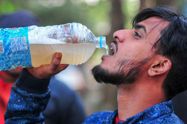 Một thanh niên đang uống nước ép chà là tươi ở ngoại ô thành phố Sylhet, Bangladesh. Nguồn: CEPI