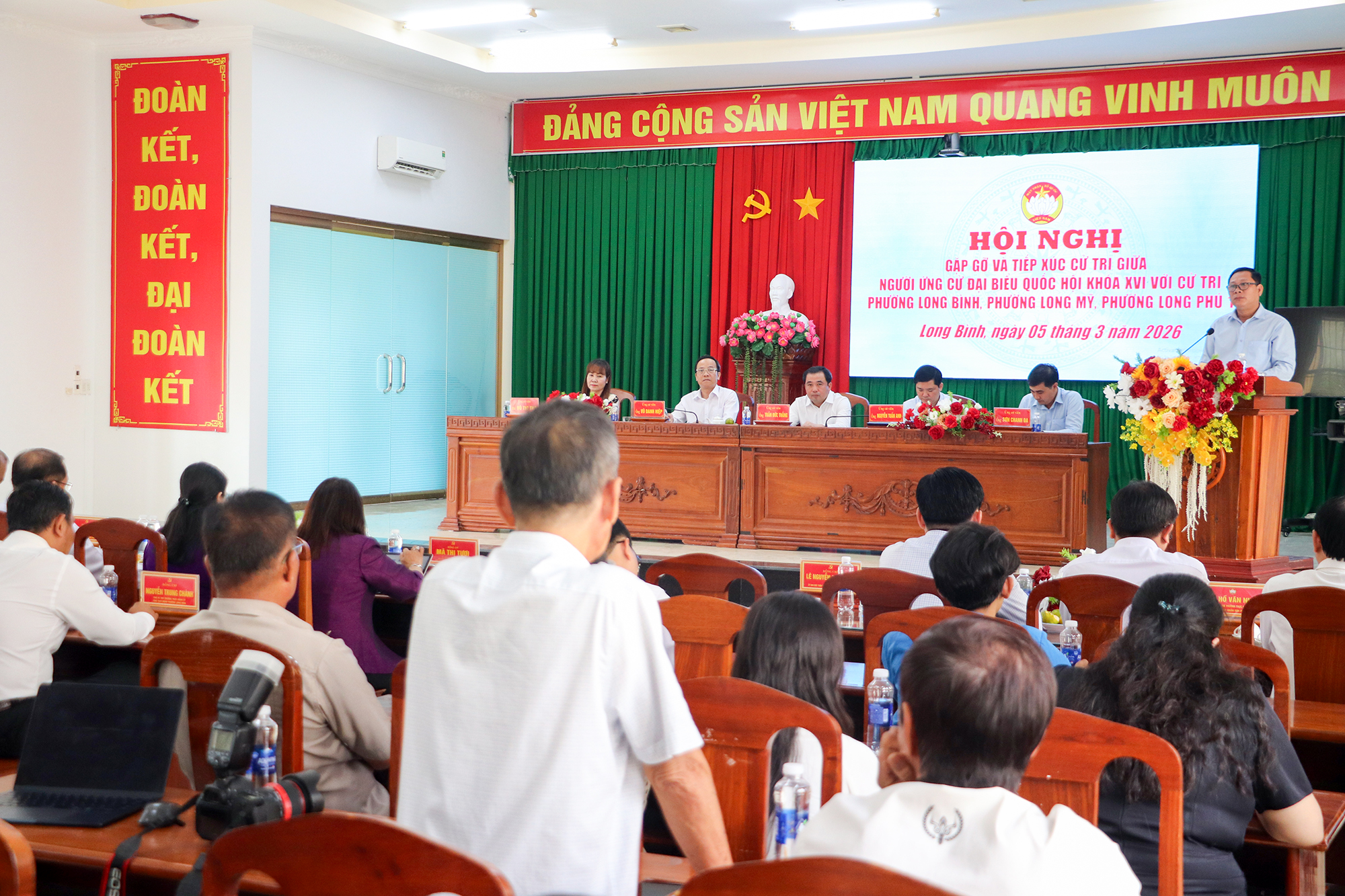 Chiều 5-3, tại phường Long Bình, TP Cần Thơ, các ứng cử viên đại biểu Quốc hội khóa XVI, nhiệm kỳ 2026 - 2031 đơn vị bầu cử số 3 tiếp xúc cử tri các phường Long Bình, Long Mỹ và Long Phú, trước thềm cuộc bầu cử.