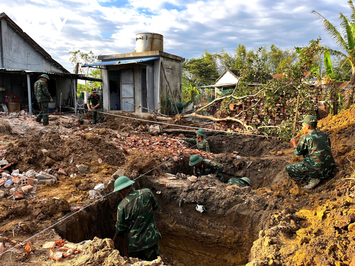 Trong cơn mưa lất phất, 15 cán bộ, chiến sĩ Ban Chỉ huy phòng thủ khu vực 6 (Bộ Chỉ huy Quân sự tỉnh Gia Lai, Quân khu 5) khẩn trương phá dỡ phần tường sập, dọn mặt bằng, đo góc và đào trụ móng để xây nhà hỗ trợ gia đình chị Trần Thị Lợi, xã Phù Mỹ, tỉnh Gia Lai (trước là xã Mỹ Quang, huyện Phù Mỹ, tỉnh Bình Định). Đại úy Đỗ Xuân Nam nhân viên chính trị, Ban chỉ huy phòng thủ Khu vực 6 cho biết, với 15 cán bộ, chiến sĩ xuống giúp dân, đơn vị chắc chắn hoàn thành nhà trước 31/1/2026.