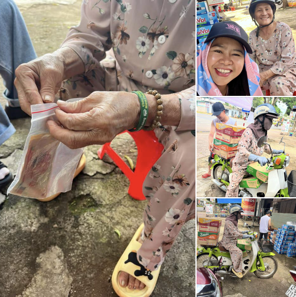 Khi biết nhóm không nhận tiền mặt mà chỉ nhận hiện vật, bà lại về gom góp thêm, rồi dùng toàn bộ số tiền 500.000 đồng mua mì tôm, sữa gửi ra vùng lũ.