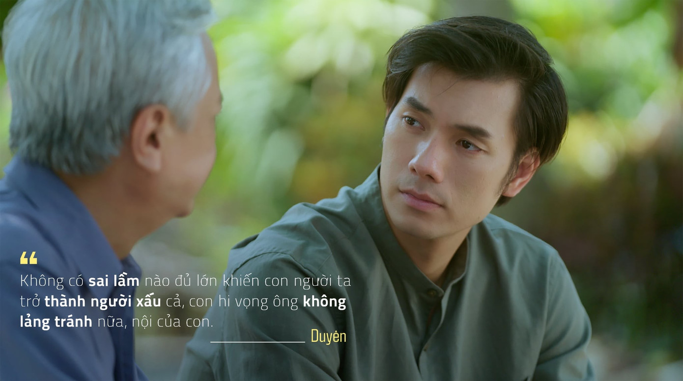 Duyên còn có những câu thoại tưởng chừng đơn sơ nhưng lại ẩn chứa sức mạnh xoa dịu, như những lời thì thầm dịu dàng, vỗ về những trái tim đang mỏi mệt.