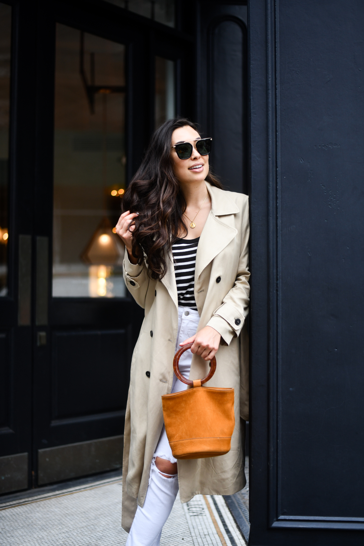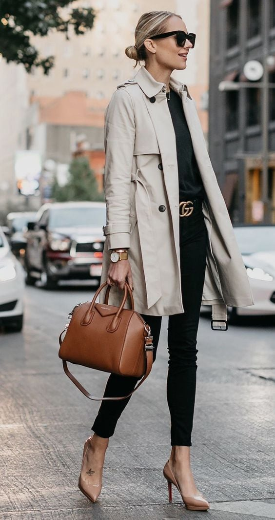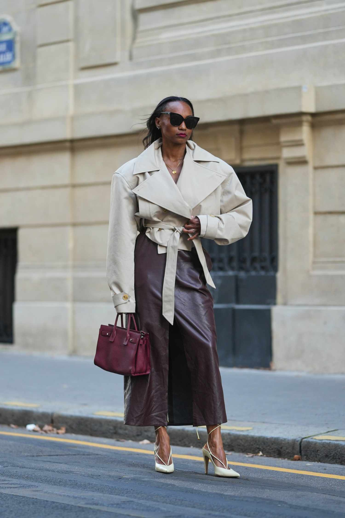 Trench coat cổ điển vốn là lựa chọn quen thuộc và đáng tin cậy cho thời điểm giao mùa; phiên bản hiện đại được cắt ngắn và nhấn eo bằng thắt lưng để tạo cảm giác gọn gàng, năng động hơn. Bạn có thể phối chiếc trench coat ngắn của mình cùng chân váy da midi ôm sát và giày cao gót mũi nhọn, tạo nên tổng thể thanh lịch mà vẫn sắc sảo.