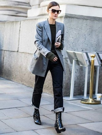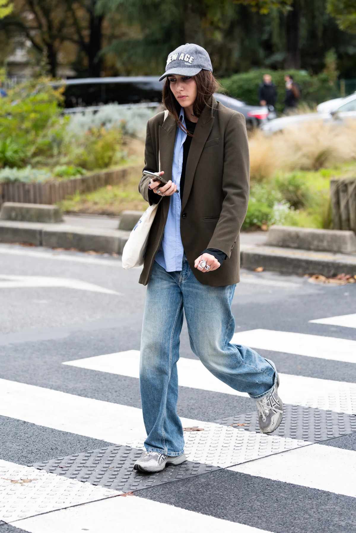 Một chiếc blazer xám phom rộng, được thắt đai nhấn eo gọn gàng, sẽ kết hợp ăn ý với quần denim đen dáng ôm và một chiếc thắt lưng mảnh — lựa chọn thanh lịch, chỉn chu nhưng vẫn hiện đại cho môi trường công sở.