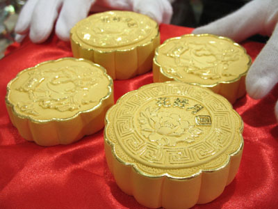 Bánh Trung thu bằng vàng ra đời từ năm 2013 tại Trung Quốc và trở nên phổ biến hiện nay, được làm từ vàng 9999, bán với giá lên đến hàng nghìn USD. Ảnh: Selfcitation