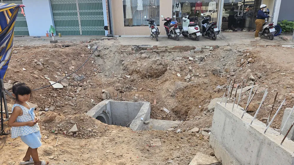 Không chỉ có đất vương vãi, những hố ga bên đường lởm chởm sắc nhọn như những chiếc bẫy.