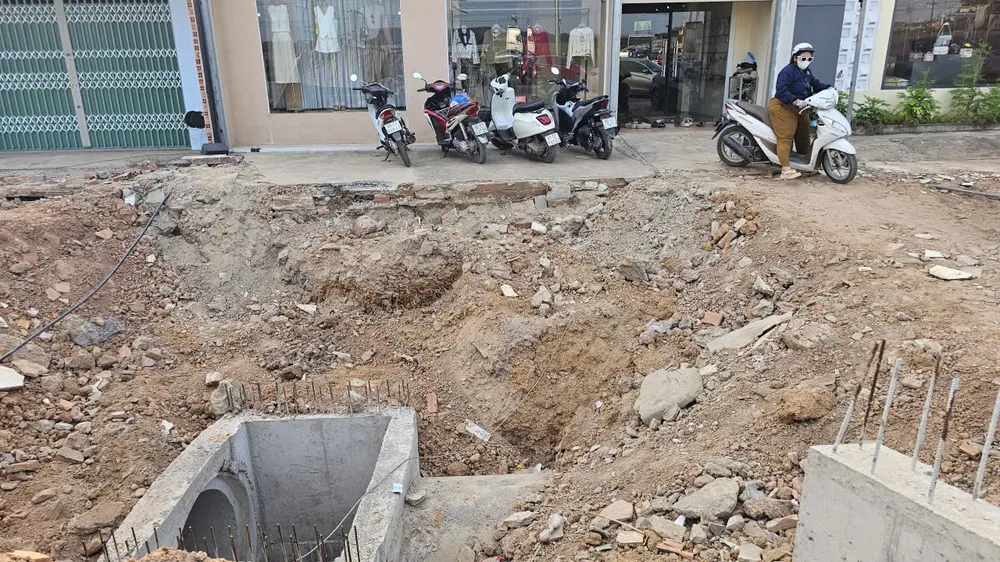 Người dân sống trong khu vực lo lắng khi đi qua đoạn đường đang thi công.