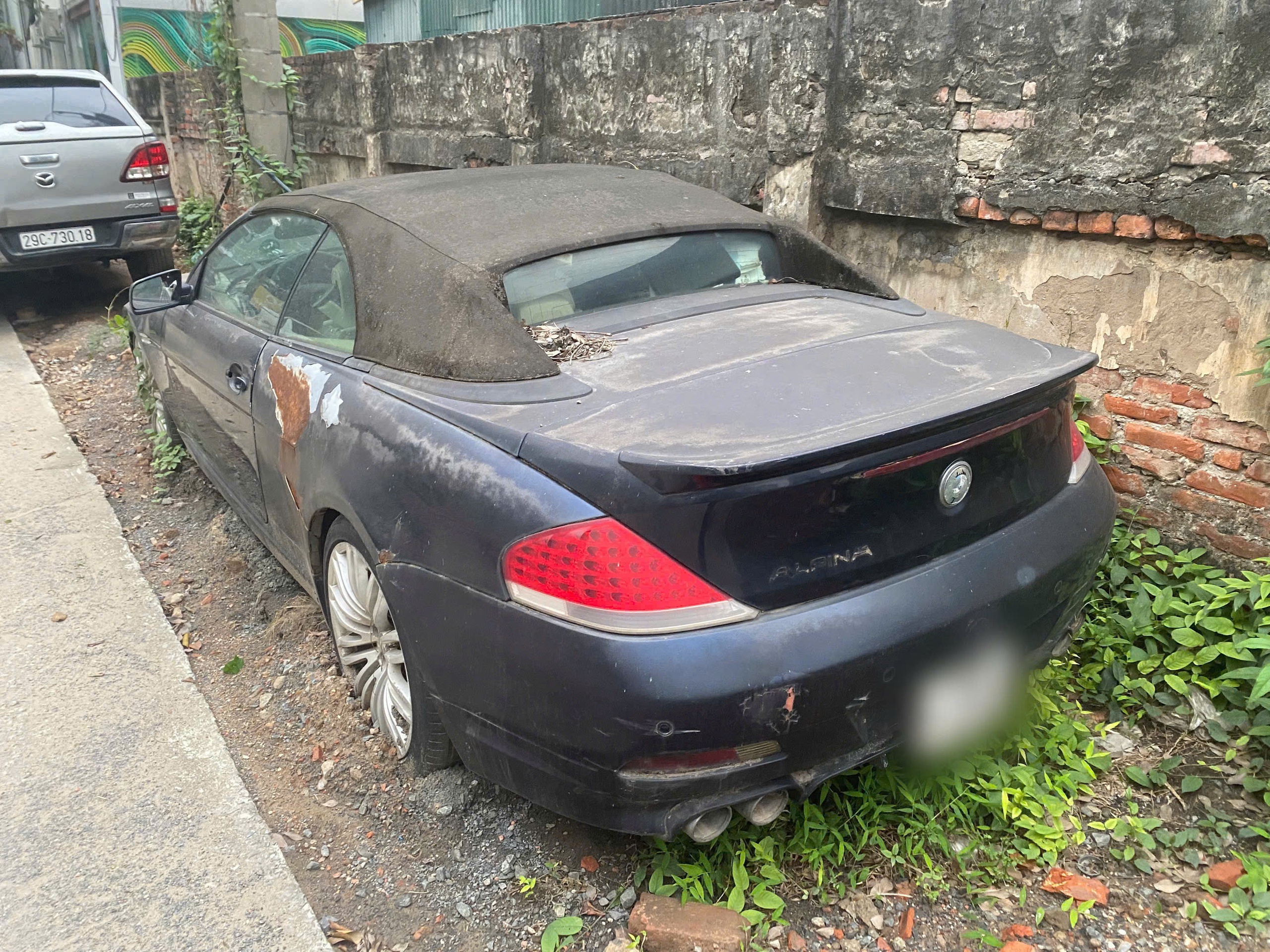 Đây là chiếc xe sang hiệu BMW cũng ở trong tình trạng bị bỏ hoang. Chiếc xe BMW Alpina B6 Cabrio là dòng xe mui trần hạng sang hiệu suất cao. Chiếc xe này thuộc hàng "siêu hiếm" không chỉ tại Việt Nam mà còn trên thế giới. Thời điểm 2006-2008, xe được nhập khẩu về Việt Nam có giá trên 5 tỷ đồng. Theo tài liệu, chỉ có 210 chiếc xe được sản xuất thủ công trên toàn thế giới.